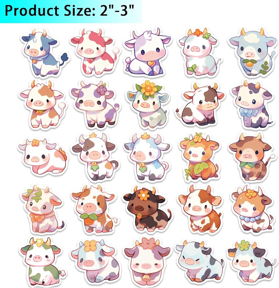 • 【Package Include】:You will get 3 packs of 50 different cow stickers each, for a total of 150, each measuring 2-3 inches