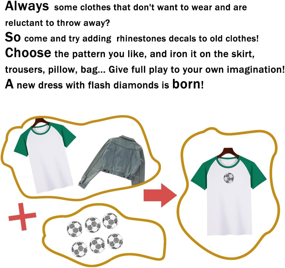مكواة شديدة القدمين على نقل الراين النقل الرياضة الصغيرة النمط الصغير بلينغ راينستون تي شيرت تي شيرت الحديد على نقل الحرارة ملصقات الإصلاح الساخن بلورة لأكياس الملابس لكرة القدم محبي كرة القدم