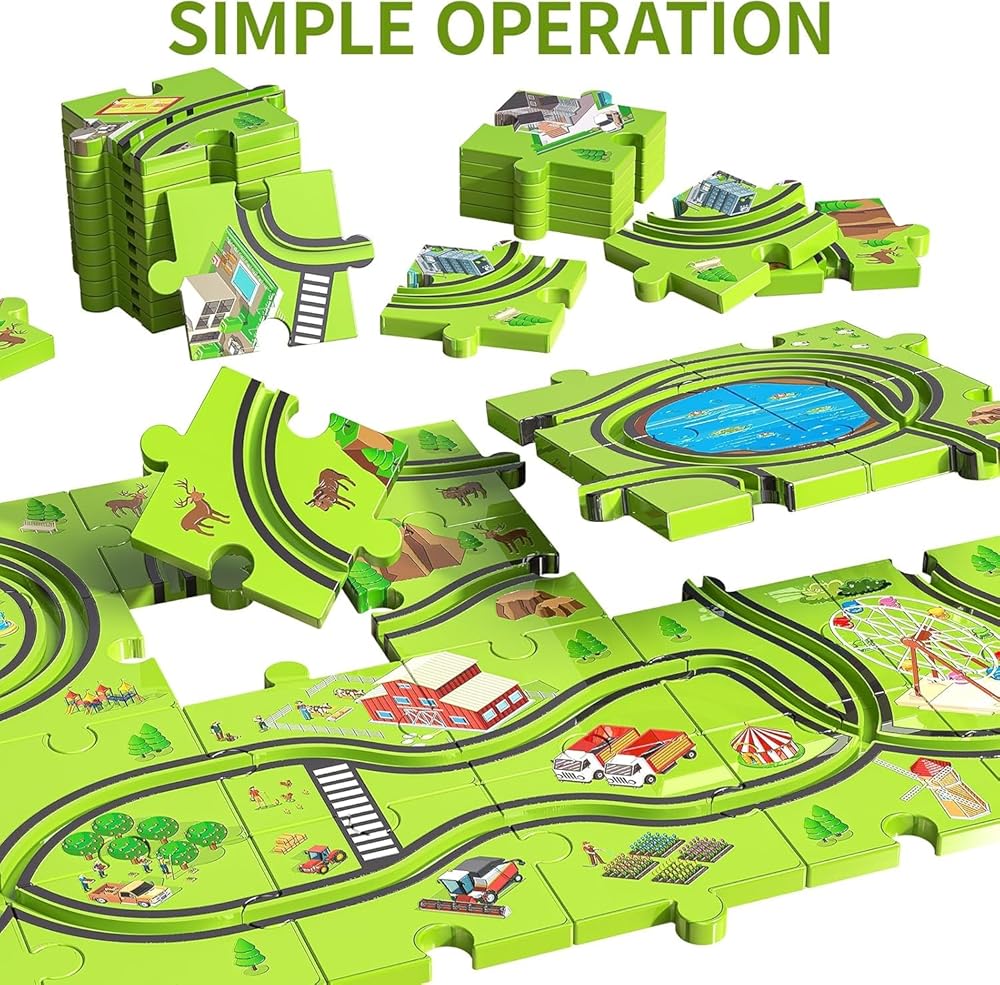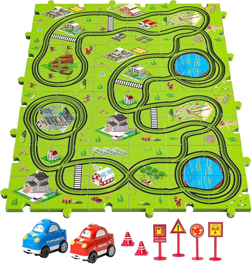 مسارات سيارات الأطفال: تتبع سيارة السباق القابلة للبلاط ألعاب الألغاز للأطفال الصغار الصغار 3-5 4-8 4-7. تتضمن مجموعة لعبة السيارات هذه 64 قطعة ألغاز ، وعلامات على الطرق ، وسيارة واحدة رائعتين يمكن تجميعها في مسارات ذات طابع حيواني محدد للمتعة التي لا نهاية لها