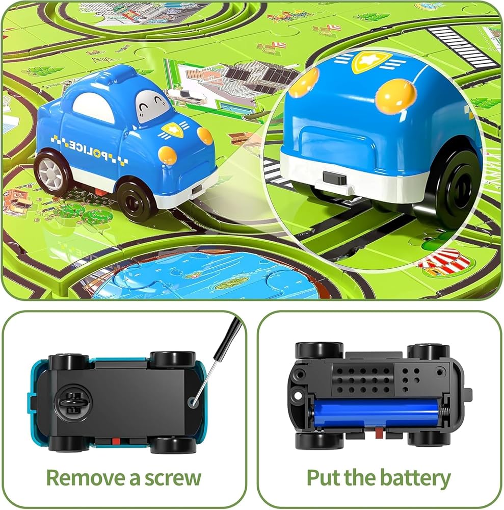 سيارة تعليمية: مجموعة المسارات هذه تأتي مع 64 قطعة و 3 سيارات لطيفة ، مصممة لتحسين القدرة على حساب الأطفال والتعرف على الشكل ، وإثراء خيالهم وإبداعهم