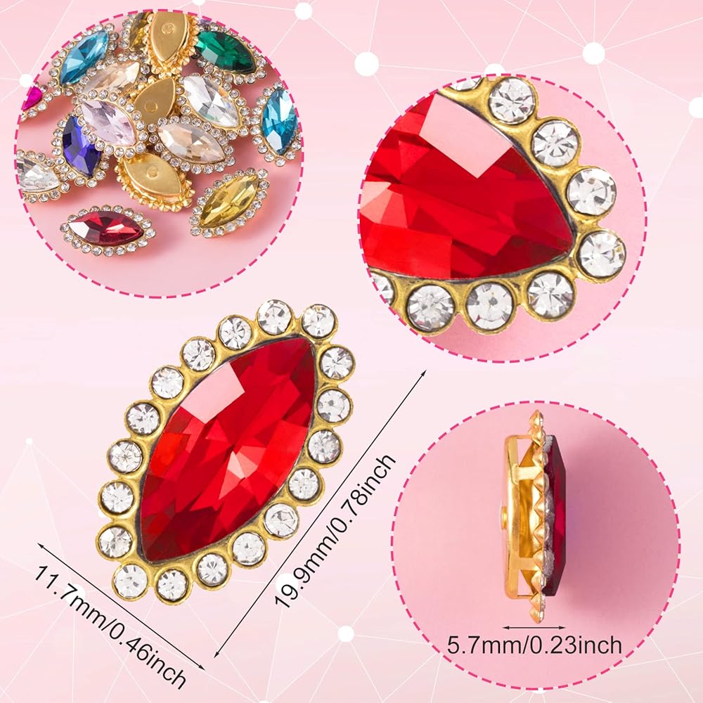 PAGOW 40Pcs Sew on Rhinestones, Glass Horse Eye Sew on Rhinestones, 10 Mixed Colors Flatback ewing Gem Stones for DIY Craft Shoes Dress Jewelry Making