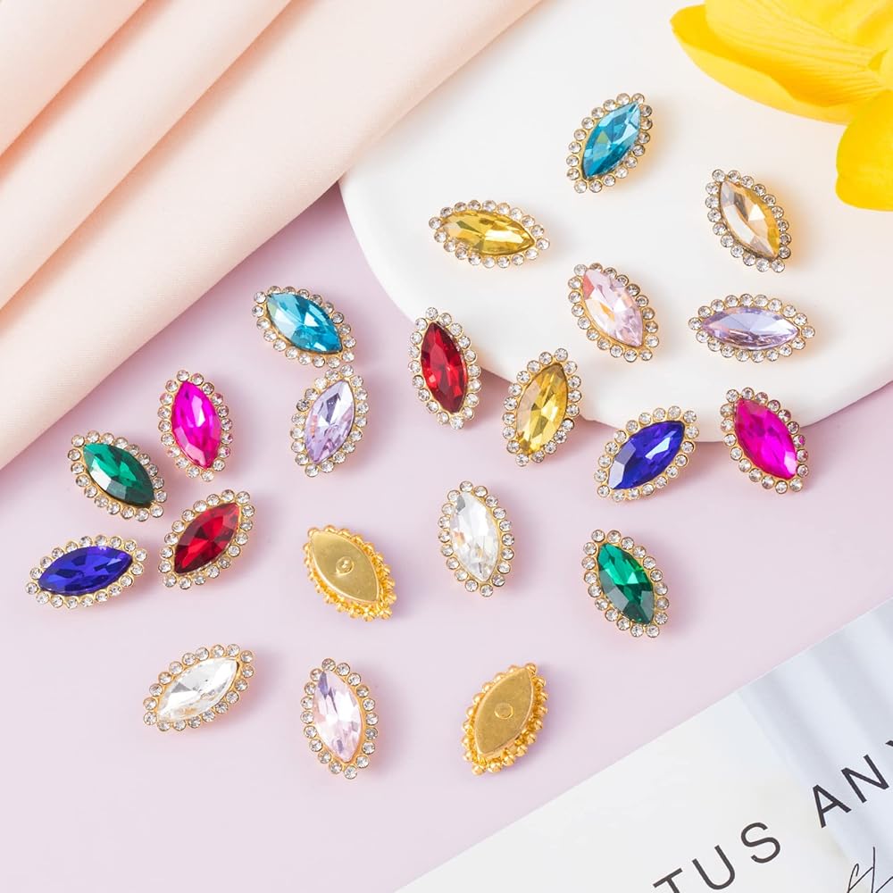 Pagow 40pcs خياطة على أحجار الراين ، عين الحصان الزجاجي على أحجار الراين ، 10 ألوان مختلطة مسطحة الحجارة الأحجار الكريمة لأحذية الحرف اليدوية التي تصنع المجوهرات (7x15 مم)