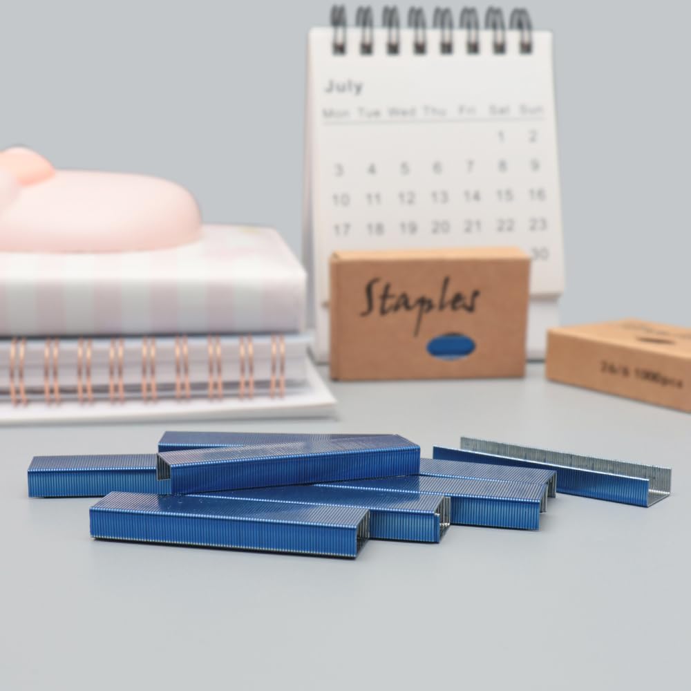 NatsumeBasics Staple 4000 Staples ملونة المواد الغذائية القياسية الملونة تناسب المكتب 26/6 تعبئة دباسة يدوي (الأزرق)