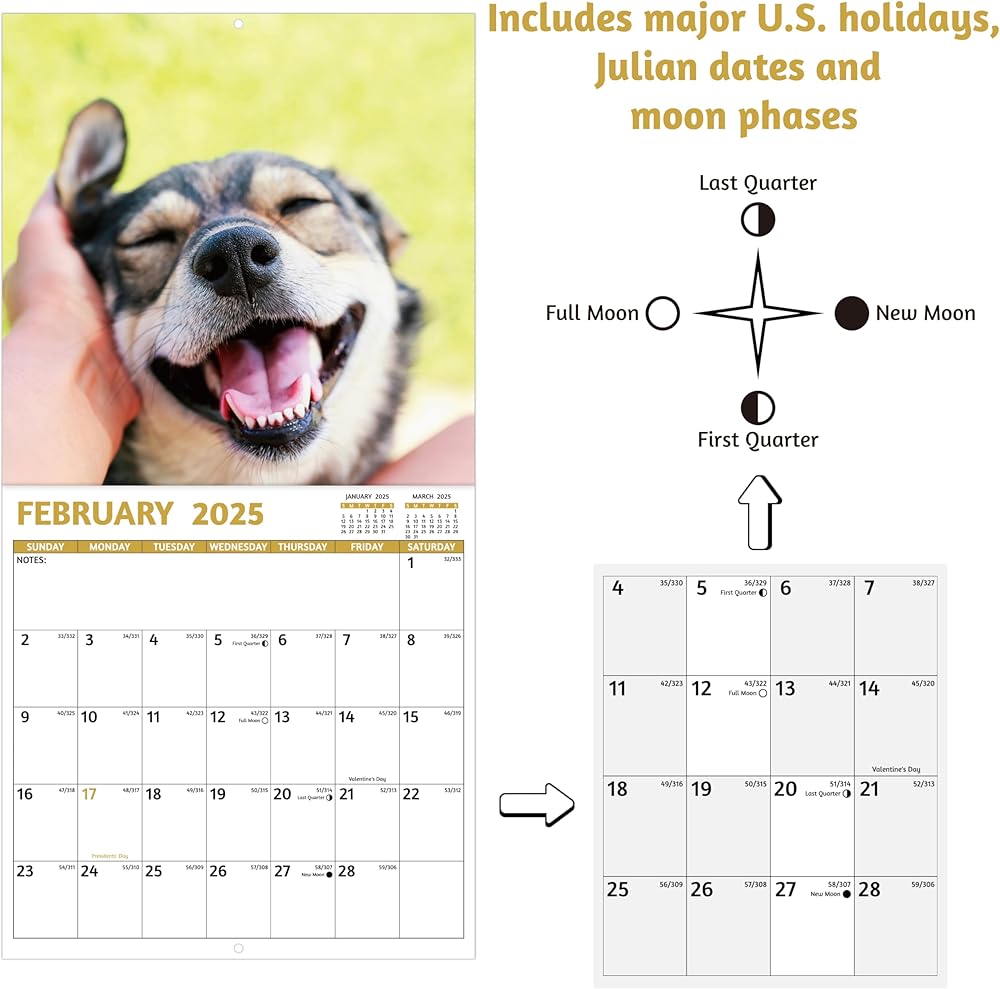 🐶 12 صورة مختلفة - يحتوي تقويم Dapty Dogs 2025 على 12 كلابًا مختلفة مبتسمة ورائعة ، كل شهر مختلف ، يجلب لك مزاجًا جيدًا طوال اليوم. بالإضافة إلى ذلك ، فإن الثقوب المعلقة تجعل من السهل التسكع على الحائط أو الباب أو في أي مكان مع السنانير.
