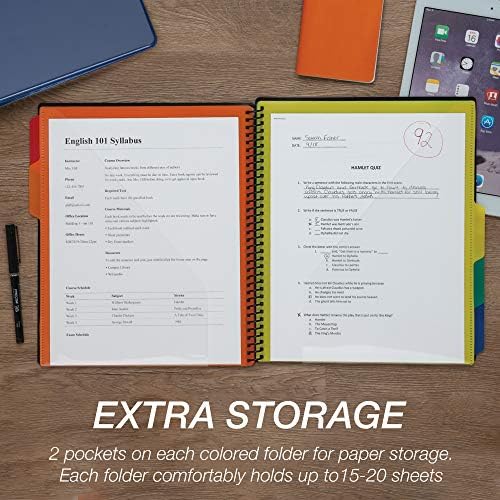Needing to find a way to organize your papers for school? Or maybe you need the perfect solution to organize your school subjects and homework? Samsill's 5 pocket notebook is the answer you are looking for! Developed with Leslie Josel from Order Out of Chaos, we created a hybrid of our original 5 subject organizer with a few tweaks to help students stay organized. (Adults will love these changes too!!) We added a smaller pocket and a clipboard to the front cover. This allows for a faster and easier way of storing loss papers. We also updated the back of the folder to included a removable/refillable notepad. Color code each divider to help manage your coursework and create a more organized reference system. With 6 different colored tabs, 5 total folders and 10 pockets this is the paper storage solution of all solutions! Each pocket can comfortably hold 15 to 20 sheets of paper. Which means each individual folder can comfortably hold 30 to 40 sheets of paper. With a grand total storage of 400 sheets (maximum). We don't recommend over stuffing, but you most certainly can do so. Each tab is customizable without having to use cardboard inserts or sticky white tabs. Write on each tab with a Sharpie marker and when you need to change the subject, simply erase clean! This durable file organizer can also be used as a coupon organizer, document organizer, portfolio folder, receipt organizer, bill organizer, or for school supplies. If our product is not exactly what you are looking for or does not meet your expectations then send them back.