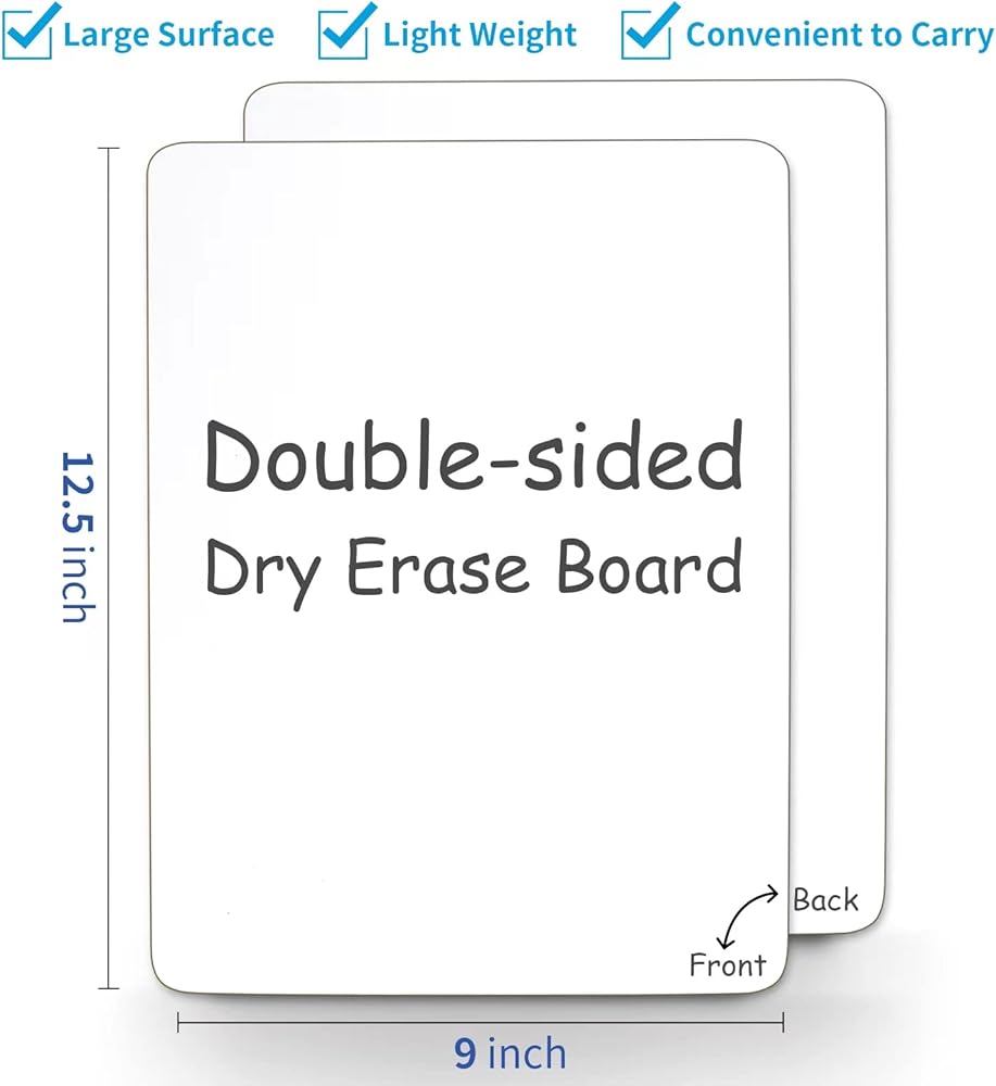 مجموعة من 36 لوحات صغيرة من لوحات المسح الجاف الجاف ، و 12 × 9 بوصات من ألواح البيت على الوجهين للطلاب والمعلمين ، ومحوّة صغيرة تجف لمكتب مدرسة الفصل الدراسي