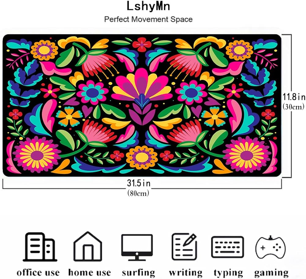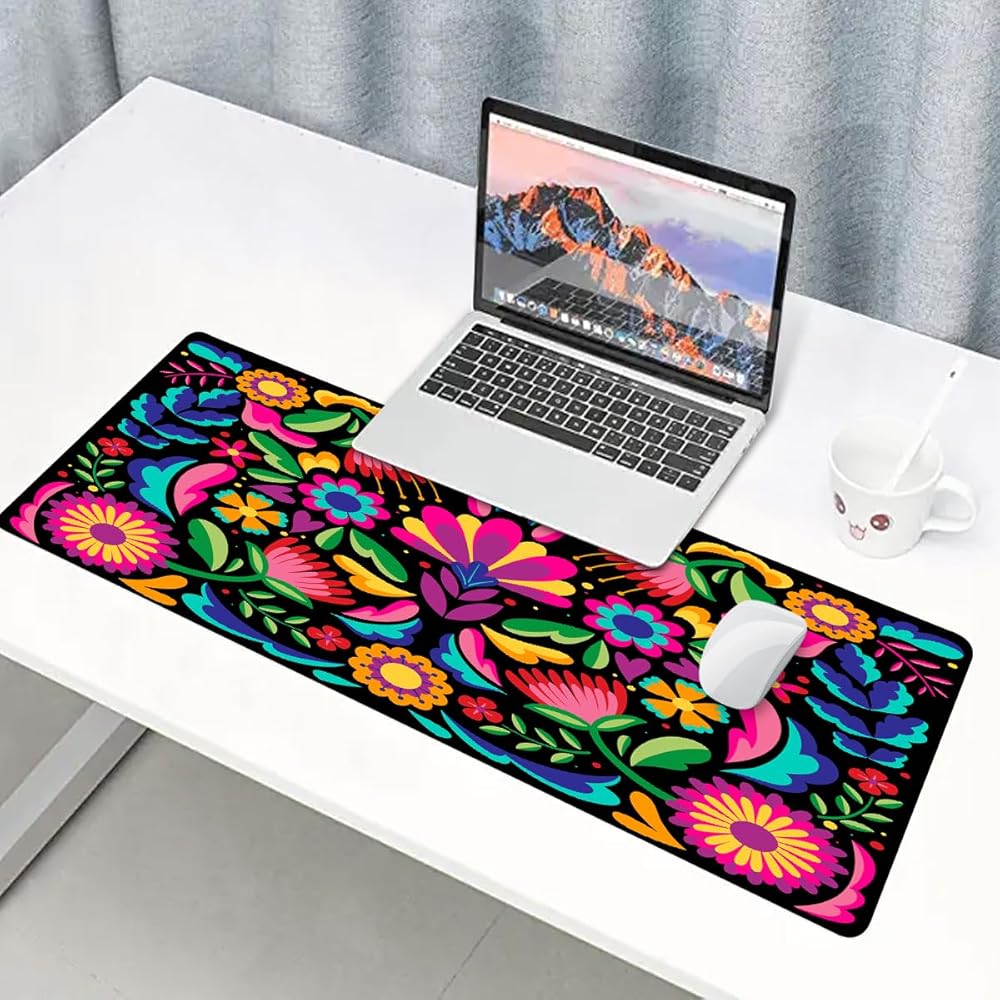 زهرة مكسيكية كبيرة mousepad 31.5x11.8 بوصة أنماط التطريز العرقي البوهيمي GRAPHIC GAME MOUSEPAD لمكتب مكتب الكمبيوتر DRIVORING BDXPMN208