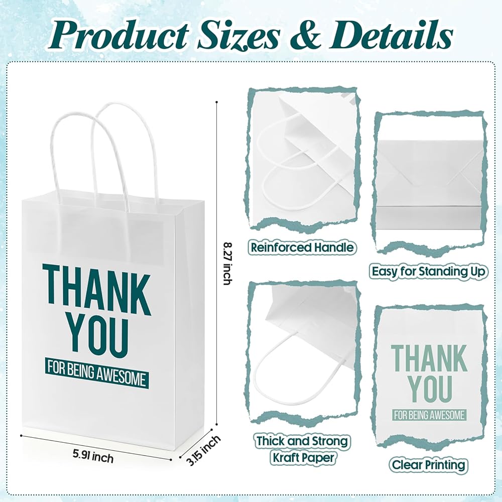 Reliable and Quality: the small thank you gift bag bulk with handles measures approx. 8.27 x 5.91 x 3.15 inches and is made of 120g thick and strong white kraft paper