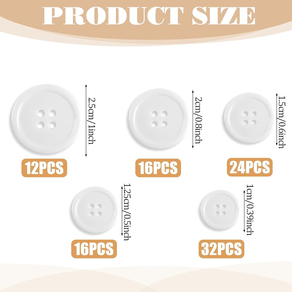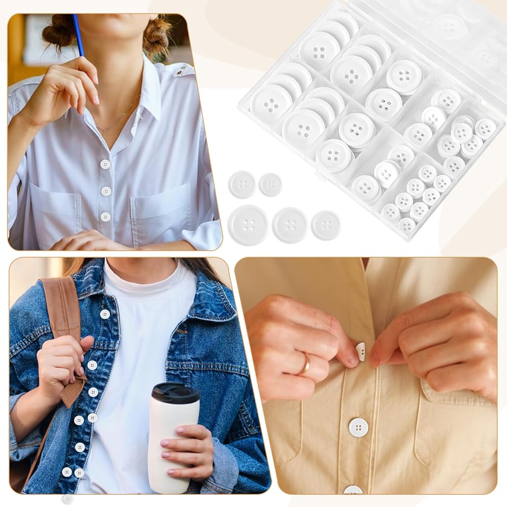 - With this 5 sizes white buttons, you no longer have to worry about not finding the right size buttons to use.