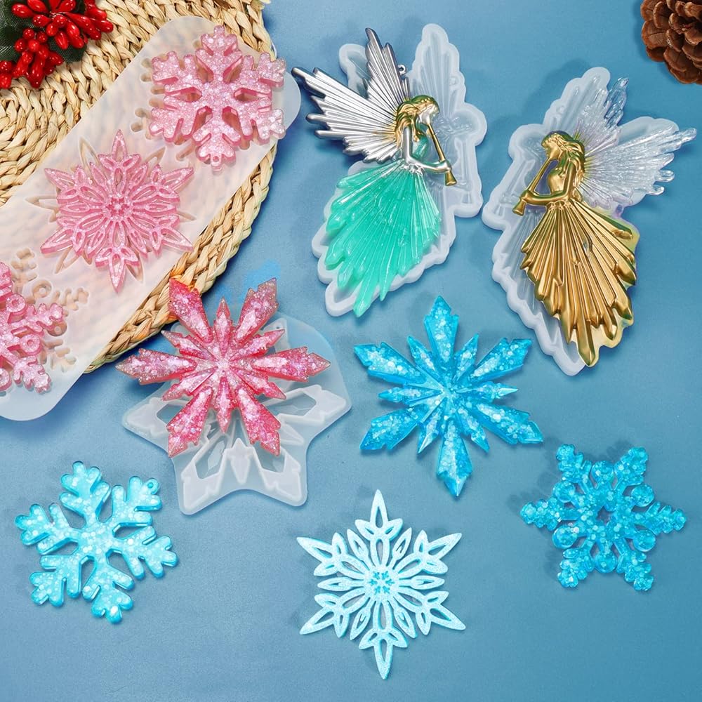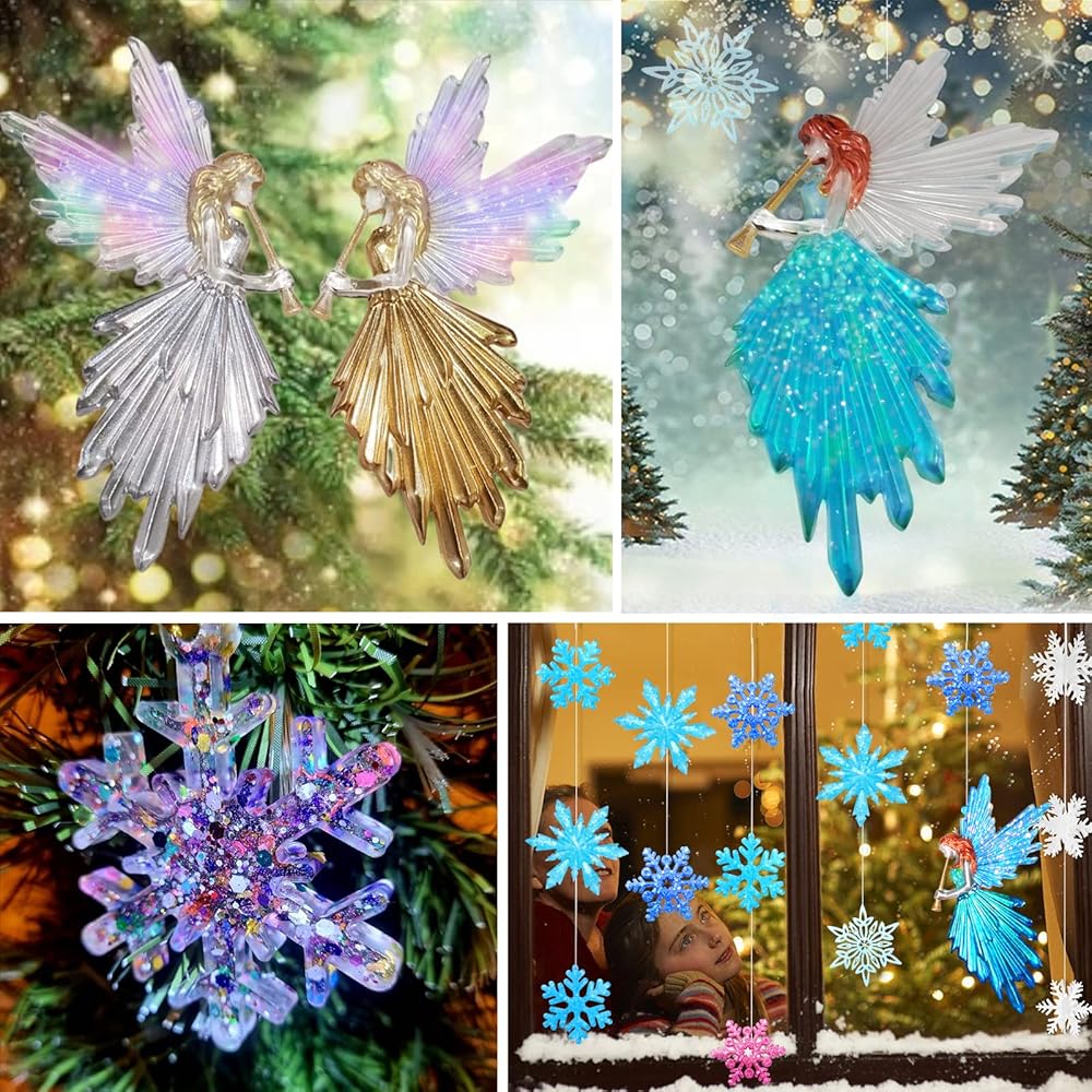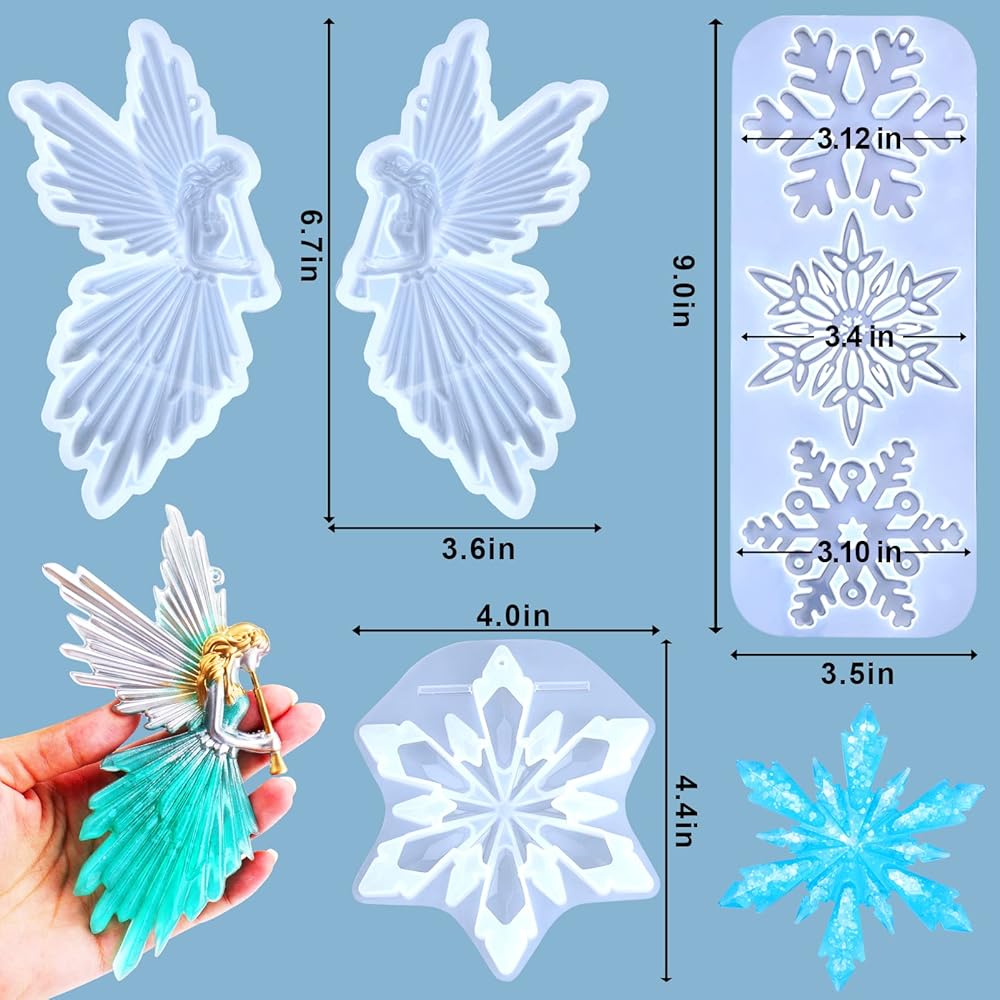 Package include - You will get 4 pcs christmas ornament resin molds, 2 pcs angel fairy resin molds, 2 pcs snowflake resin molds with 4 different shapes. Enough quantities to meet you different demands for DIY unique ornaments pendant for your christmas