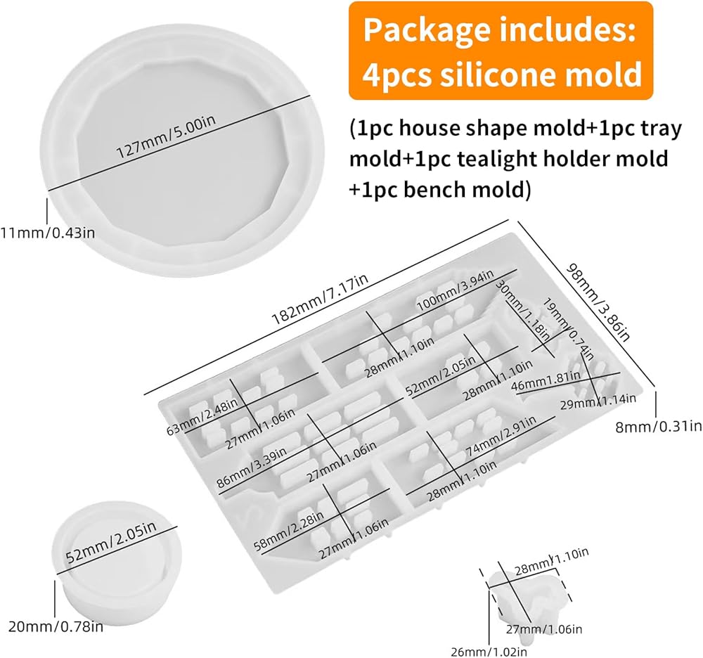 Japleed House Shape Candle Holder Silicone Molds, Hollow Building Tree Round Shape Molds for Epoxy Resin Concrete Plaster Gypsum Casting, DIY Unique Home Decor Art Craft Mould Gift Resin Accessories