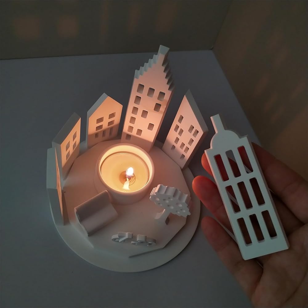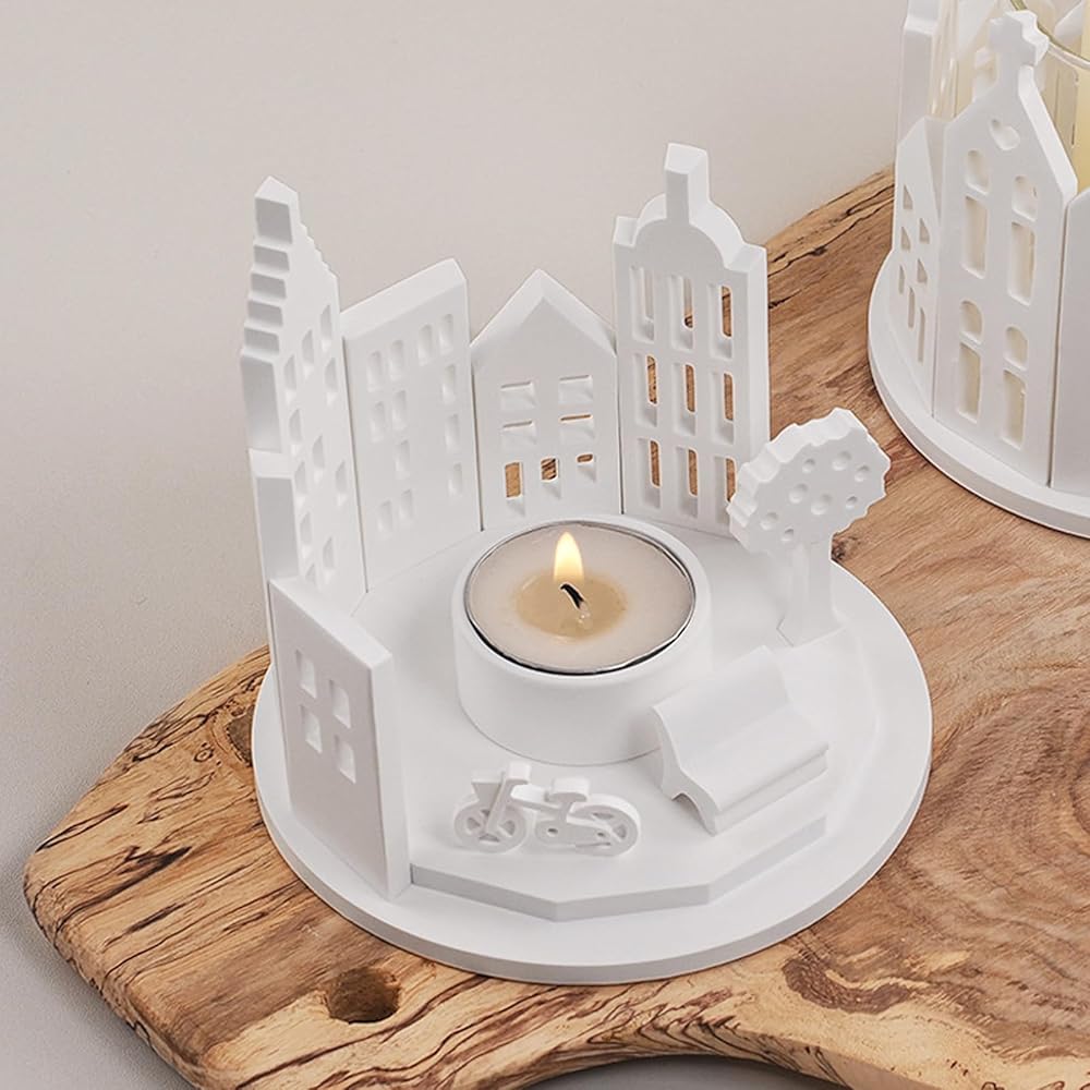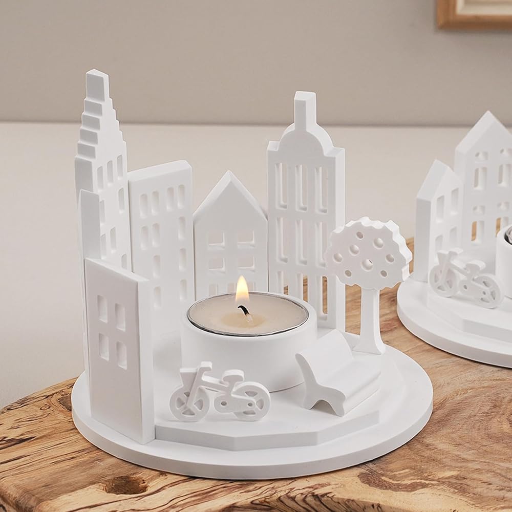 COZY DECOR MAKING: The silicone molds features unique hollow building, bicycle, tree shape, combined into a warm tealight candle holder. You could add your favorite ingredient like resin concrete cement, to create your wonderful product