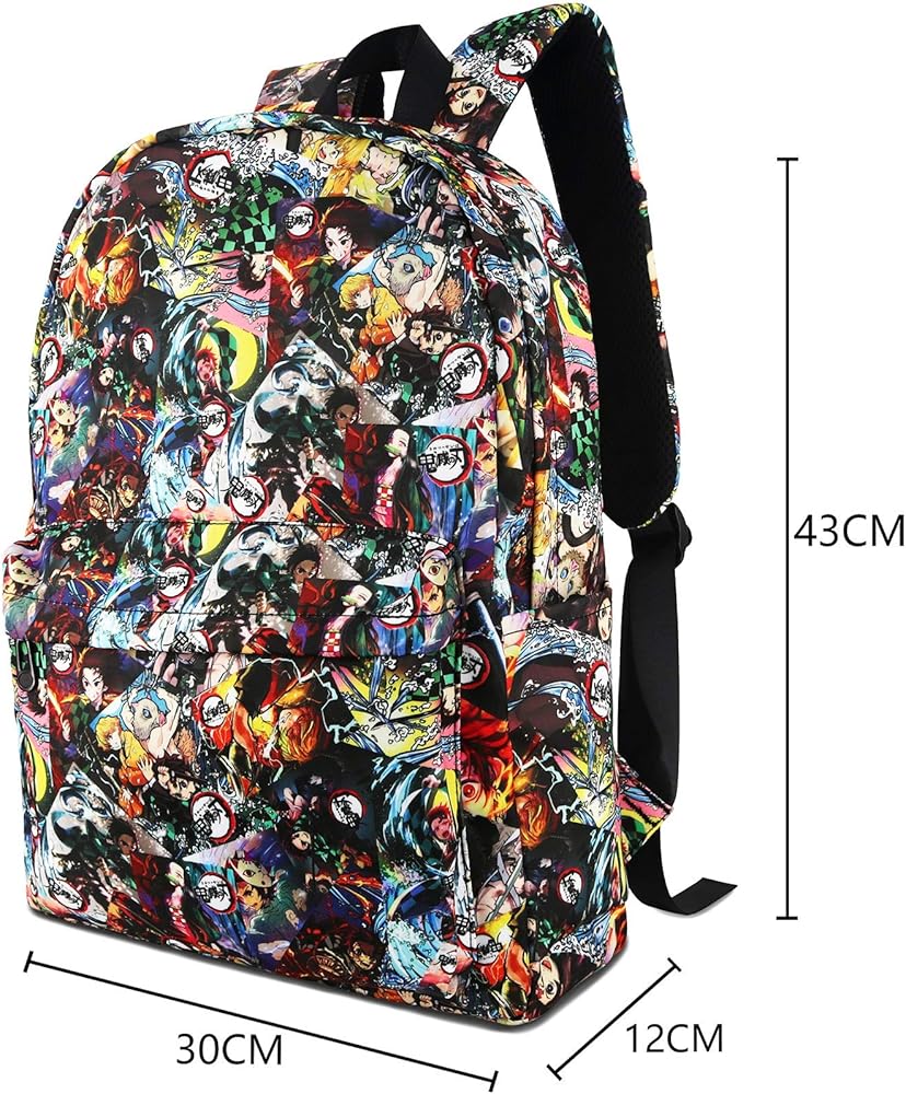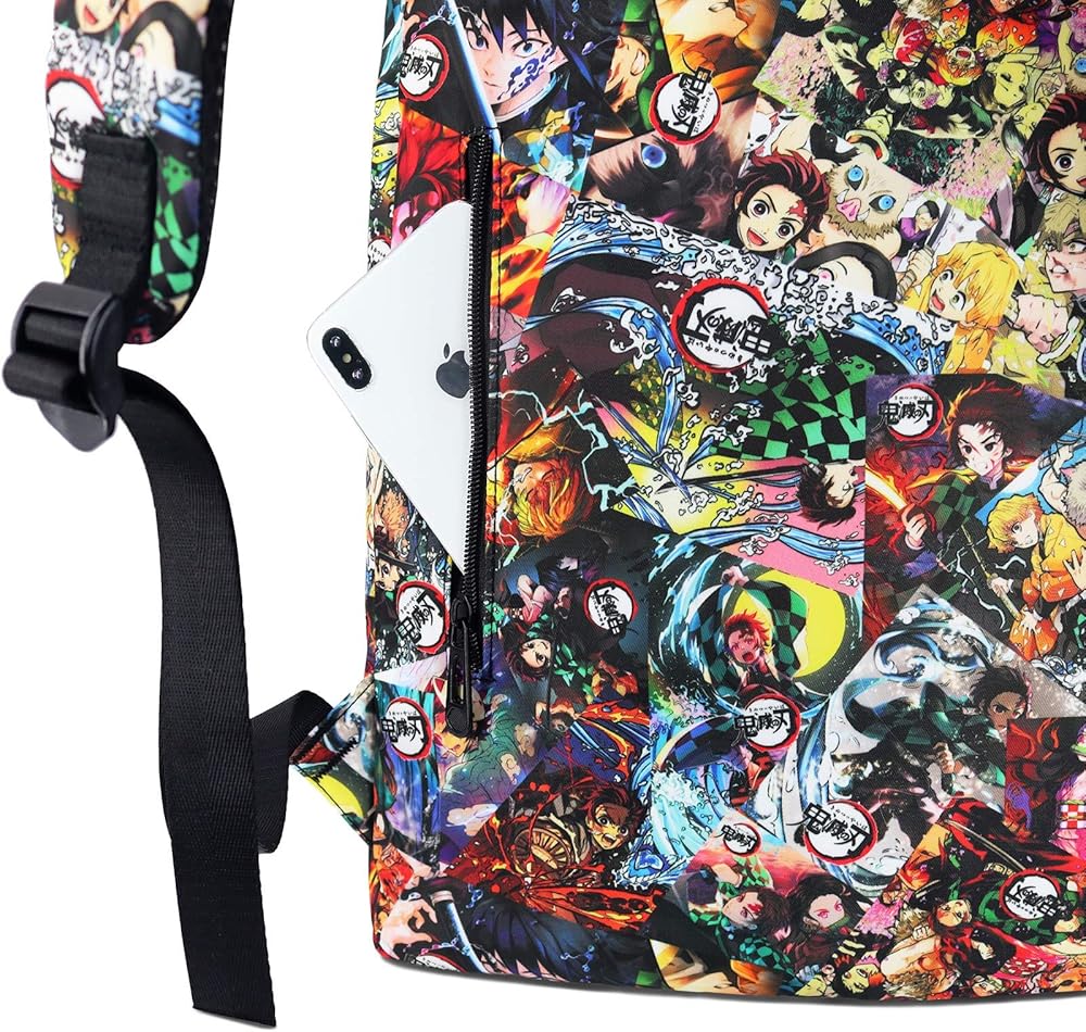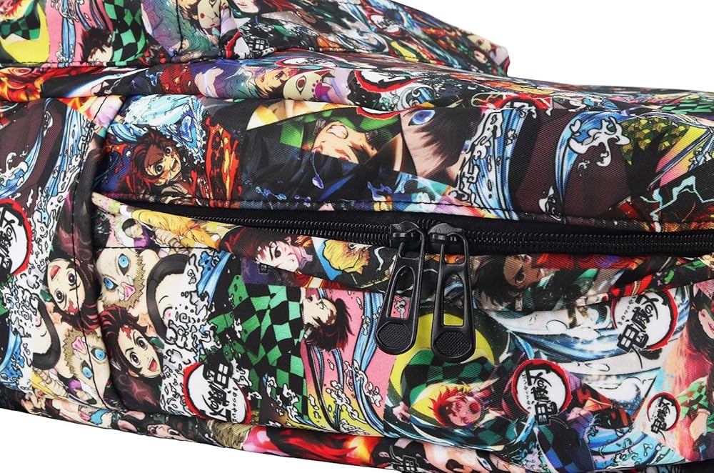 - FEATURE: Douple zipper closure. Adjustable padded shoulder straps. All over printed with anime characters.