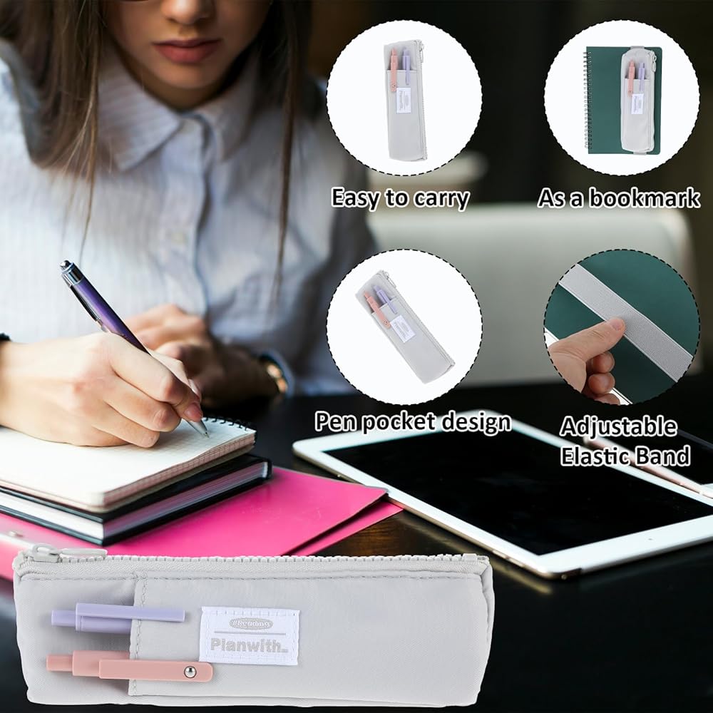 【Lightweight Pen Holder】Made of high-quality polyester fabric exterior, soft inner padding, and a strong zipper, the pencil box is durable, washable, and wear-resistant. This elastic pen holder for notebook protects your accessories against dirt, scratches, and shocks, ensure contents stay safely enclosed and provides long-term use.