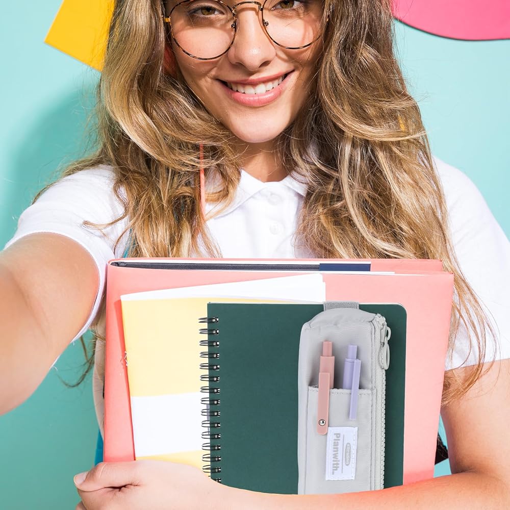 【Roomy Space Design】 This notebook pen holder includes a zipper compartment that provides ample and safety storage space for your makeup and other accessories. The journal attach to your favorite notebook to keep pens and pencils organized while working on projects or attending lectures.