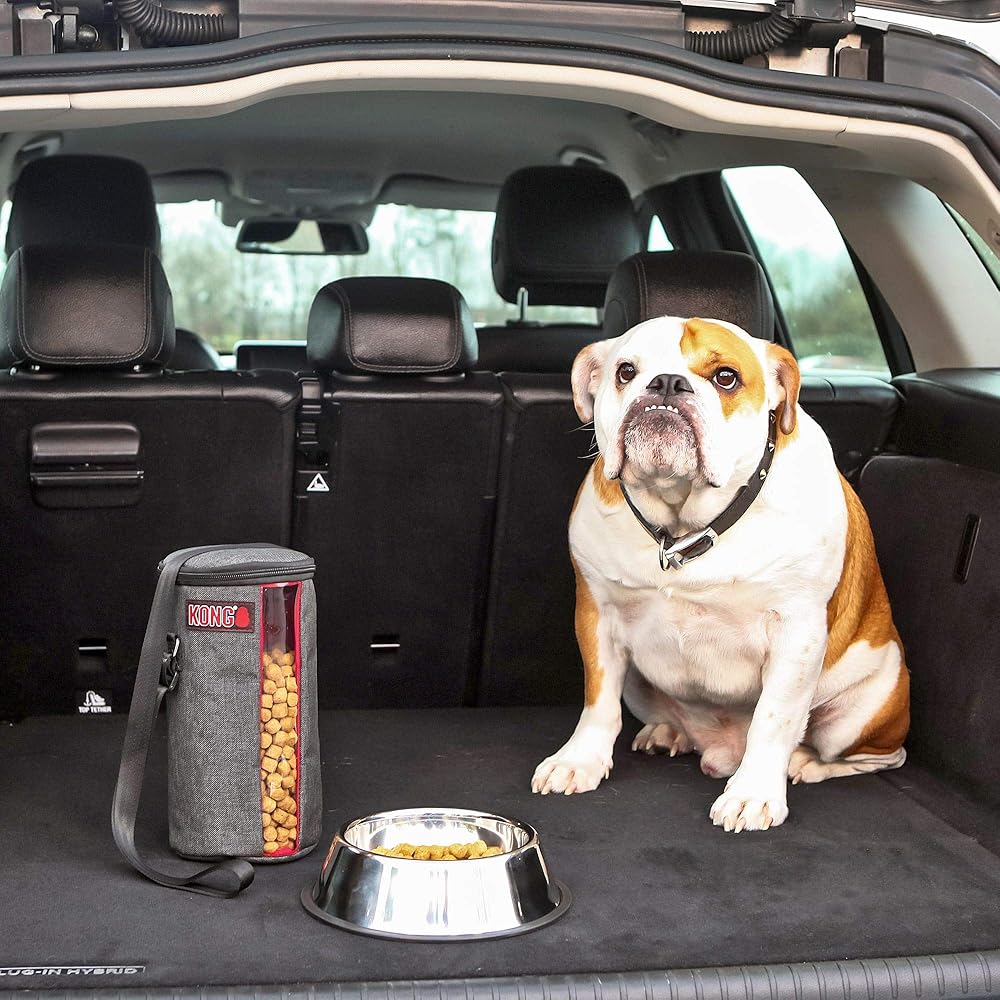 This product has been designed and manufactured to the highest standards. It's ideal for traveling with your pet. Keep your dog's food fresh in this KONG Kibble Storage Dog Food Travel Bag. The storage container has a zipper top to help you quickly fill and dispense food on the go. Never guess when you're going to need a refill with the visibility window that gives you a quick view of the amount of food inside. Thanks to the water-resistant material, pet food stays fresh and dry. The adjustable, hands-free carry strap allows you to easily bring the food with you - making it ideal for hiking and vacations!