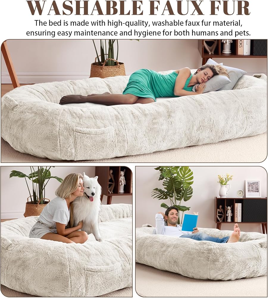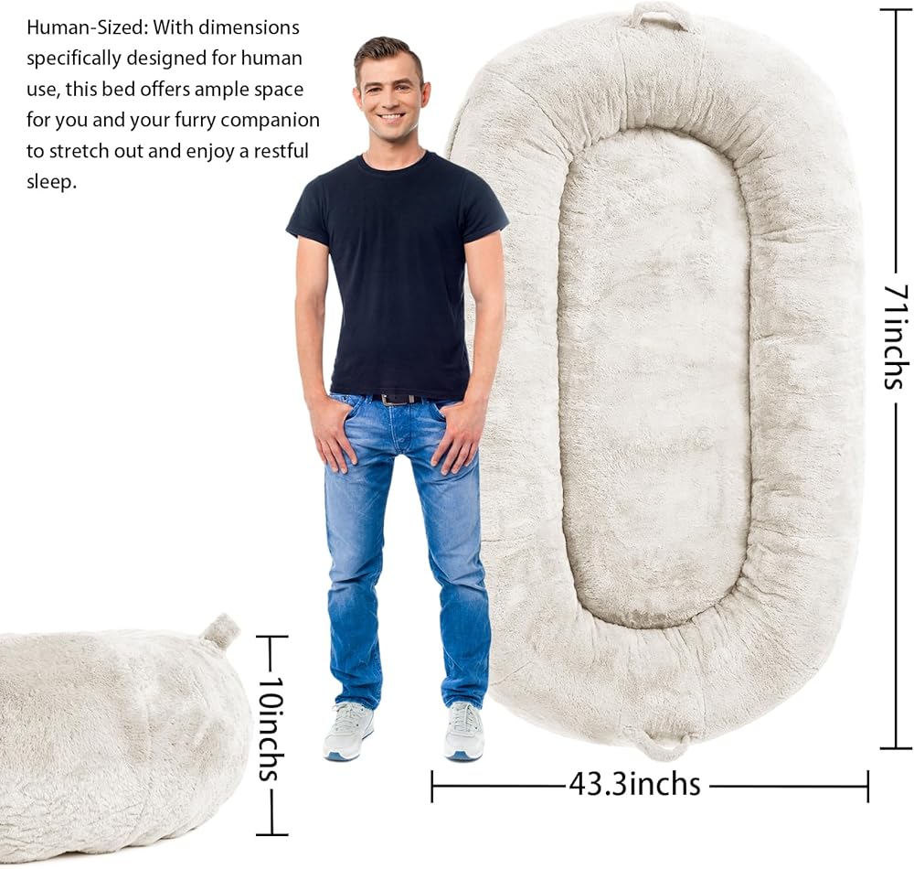 Versatile usage: This bed serves a dual purpose by accommodating both men and dogs. It can be placed in the living room, bedroom, or any other space in the house where you and your canine companion spend time together. Its stylish design seamlessly blends into any home decor, making it a versatile and practical addition to your living space.