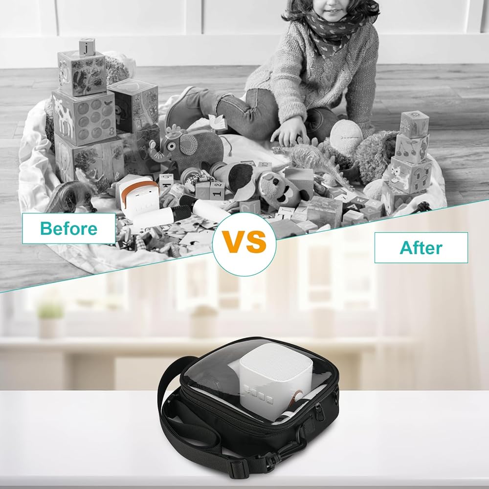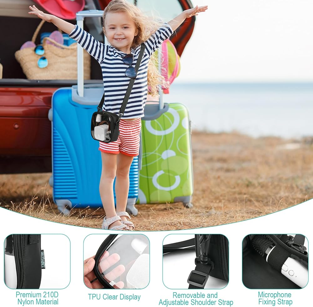 【Premium Material】The Mini bluetooth speaker shoulder bag is made of premium 210D nylon and clear TPU, which is very durable and easy to clean. In addition, through the clear TPU display, you can clearly see your bluetooth speaker and microphones.