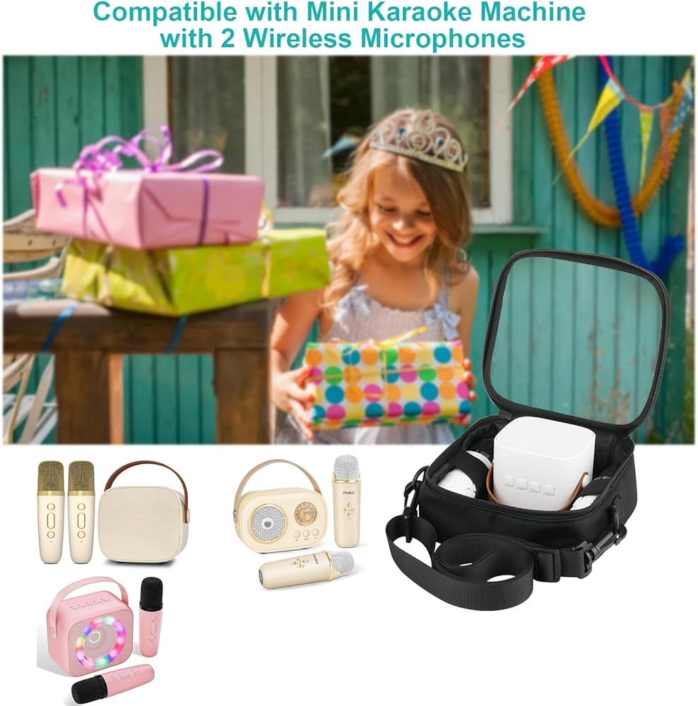 【Mini Karaoke Machine Storage Bag】Size: 6.5*2.5*6 IN, compatible with Mini karaoke machine with 2 wireless microphones, especially suitable for children's outdoor activities or traveling.