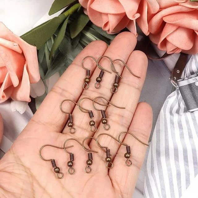 100pcs 20 * 17mm النحاس الأحمر خط السنانير الأسلحة الأذن hypo-allergenic الأسماك السمكة مع الكرة والفلف من الأسلاك المجوهر