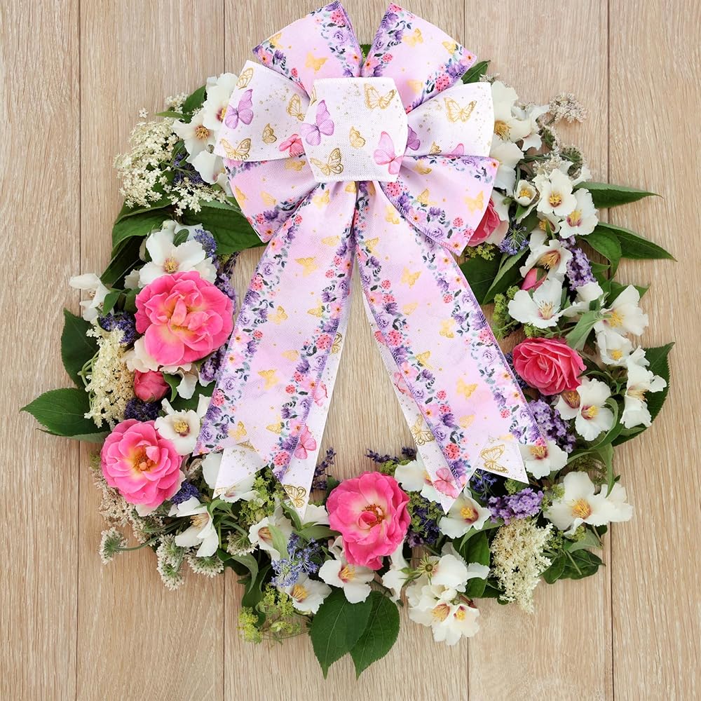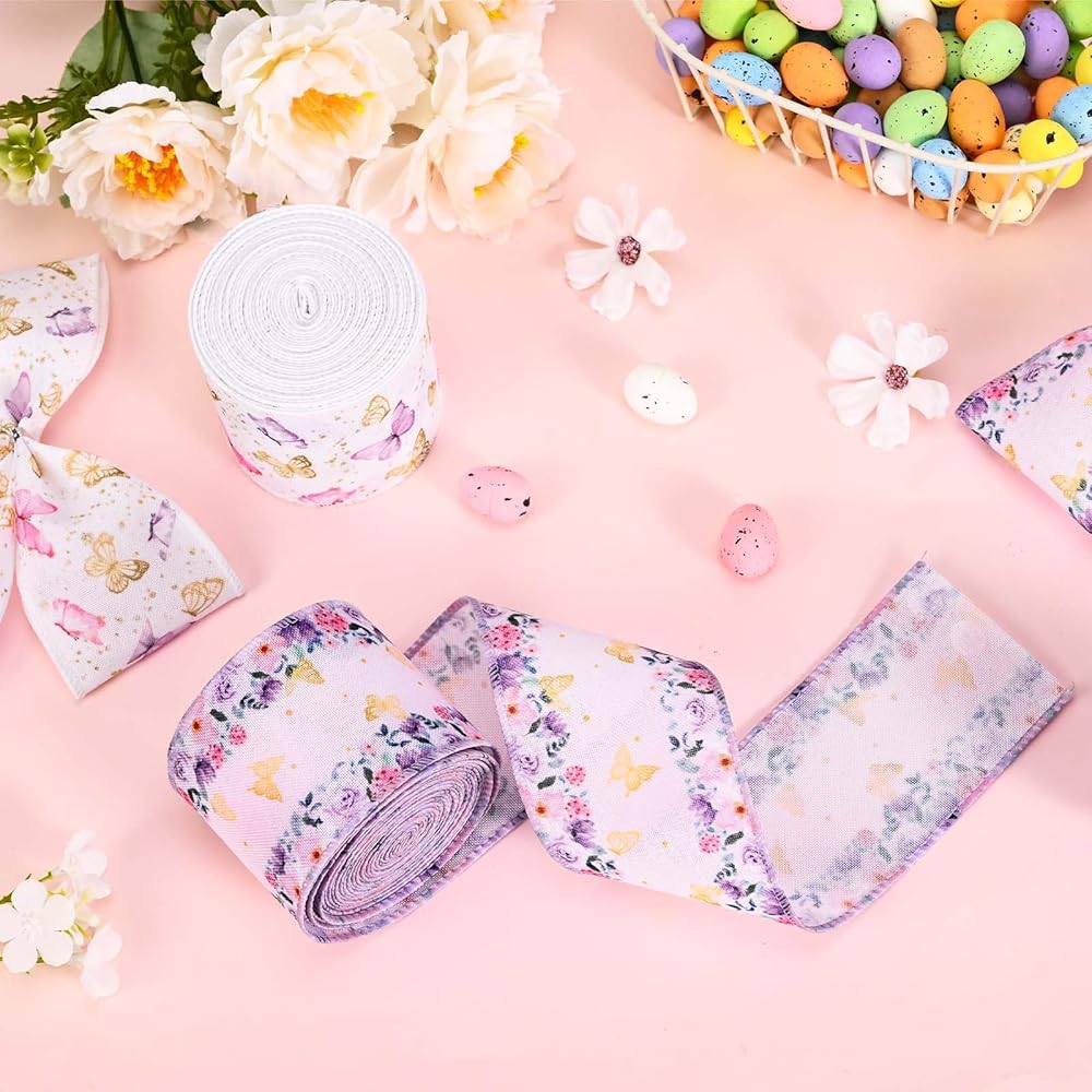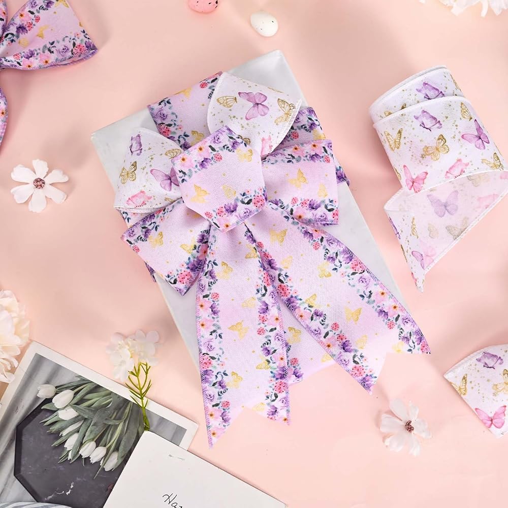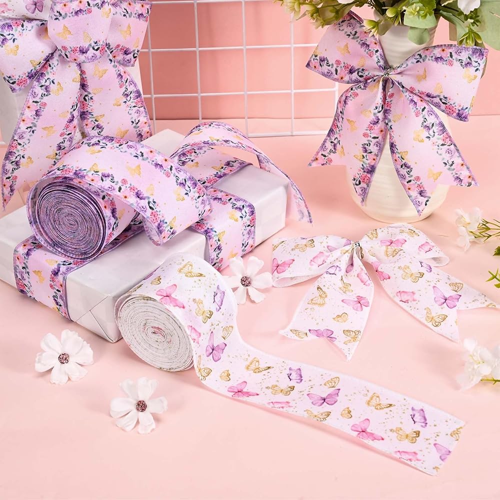 Sanixin 2 Rolls Butterfly Ribbon Violet Butterfly Plaid Burlap Ribbon Spring Ribbon for Easter Spring Crafts Wreaths Wrapping Bow Gifts Box DIY Crafts Decor