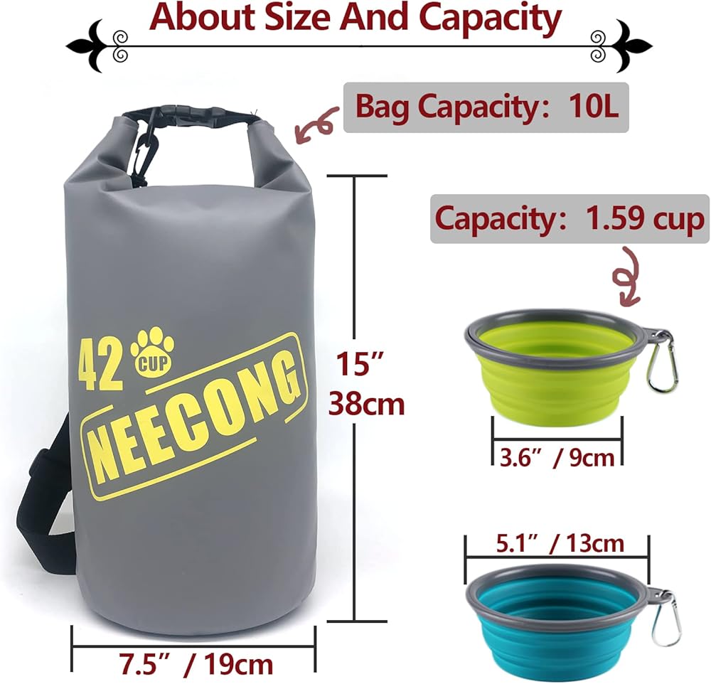 【10 لتر كيس طعام كبير للكلاب】 الحقيبة تحافظ على الأطعمة الجافة والكتف وحزام الحلقة كمقبض سهلة الحمل. سعة حقيبة الطعام: 42 كوبًا من طعام الكلاب (10L). بما يكفي للسفر لمدة أسبوع واحد ، وسهلة ضبط أي كمية من الطعام! حجم وعاء الكلب: 5.2 "× 2.2" عميق (450 مل). الحجم العالمي ، مجرد قدرة كافية لتجنب النفايات.