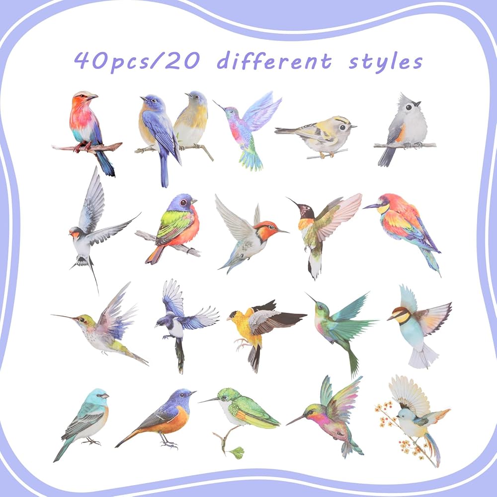 غريفوسيا 40 PCS ملصقات الطيور ، ملصقات الحيوانات اللطيفة فينيل مقاوم للماء ملصقات الطائر الطنان للأظرف مجلة زجاجة ماء الزجاجة الخلوية.