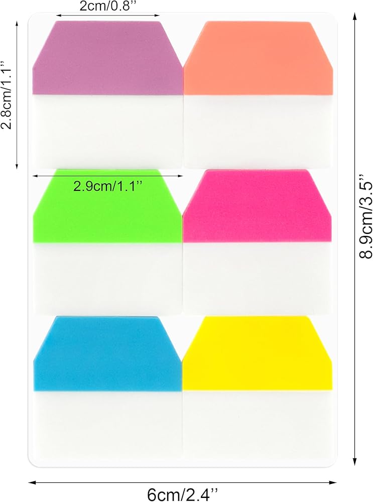 حجم علامة التبويب المفردة: 2.9 × 2.8 سم / 1.14 × 1.1 بوصة متوفرة في 6 ألوان نيون نابضة بالحياة ، كمية كافية لجميع احتياجاتك التي تم وضع علامة عليها في صفحتك.