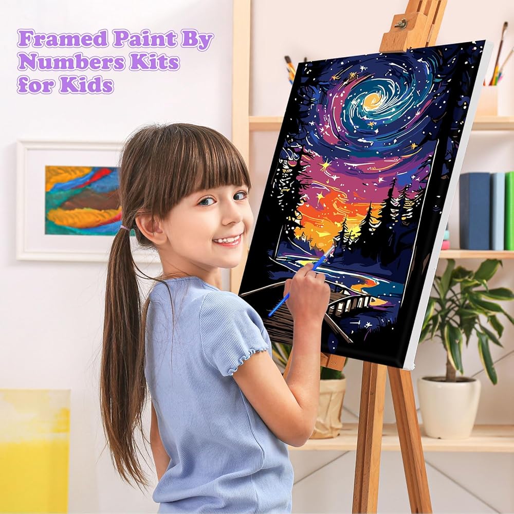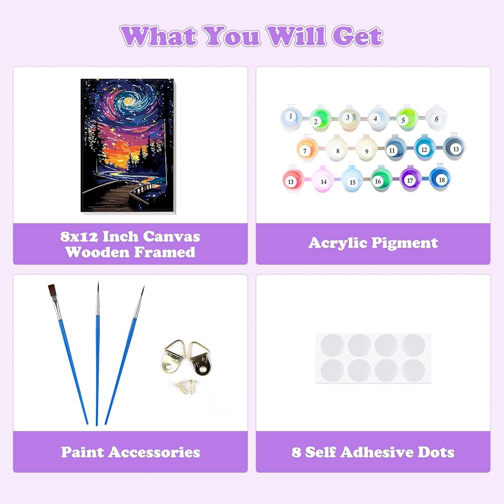 Mogtaa Starry Night Paint by Number Att for البالغين المبتدئين مؤطرة ، الطلاء البالغين من قبل مجموعات الأرقام على القماش ، وأطقم الطلاء السهلة للبالغين ، ومجموعات الطلاء الزيتية التجريدية DIY للديكور المنزلي ، 8x12in