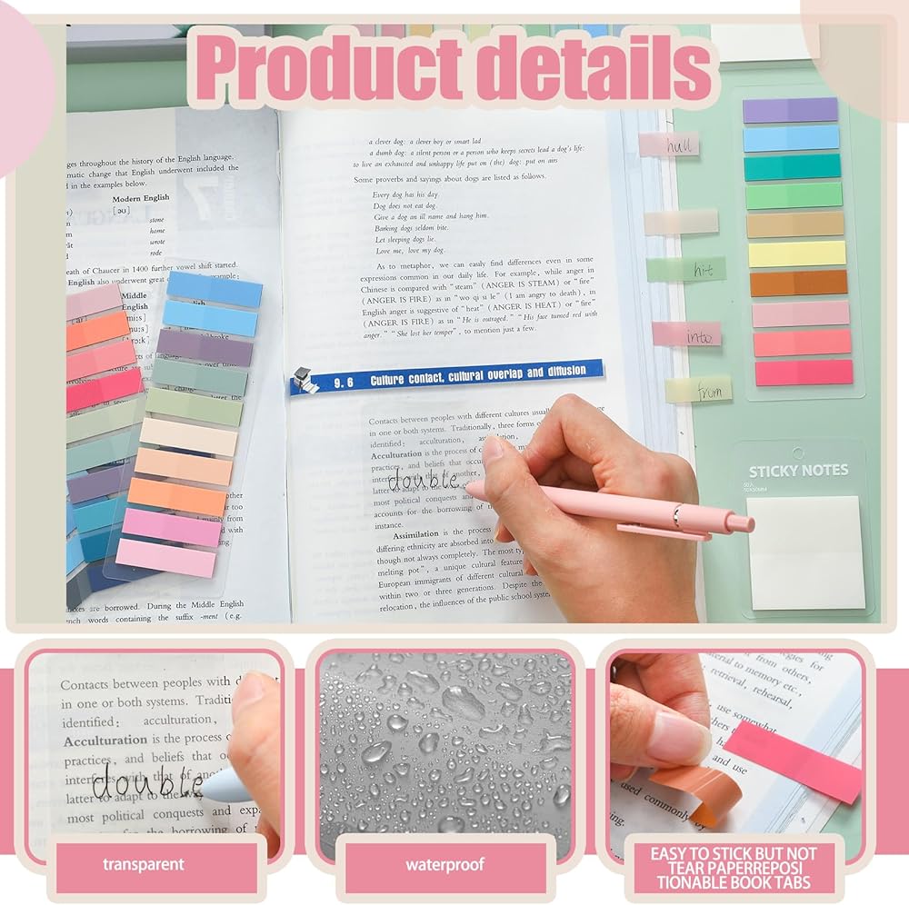 The annotation kit comes with 2 sets of translucent sticky notes that allow you to see through the page. They will enable you to mark text without obscuring it, ensuring that you can easily refer back to your original notes or comments.