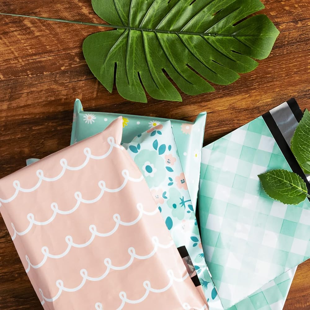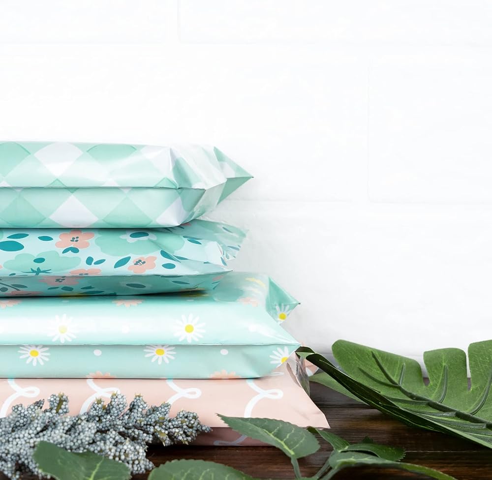 Ruspepa Poly Mailers الشحن الأكياس الشحن الأكياس البريدية ذاتية السميكة ، الوردي والأزرق ، 6 × 9 بوصات ، 100 حزمة - الربيع