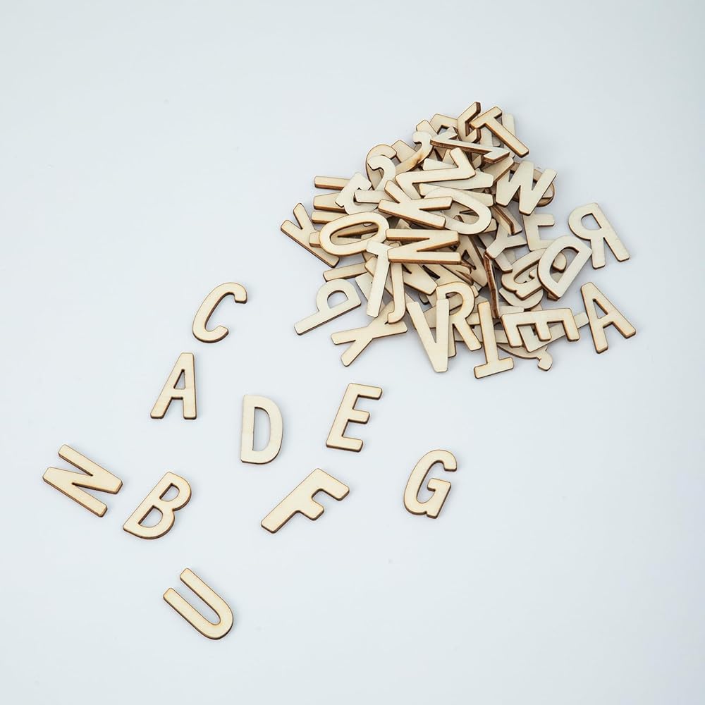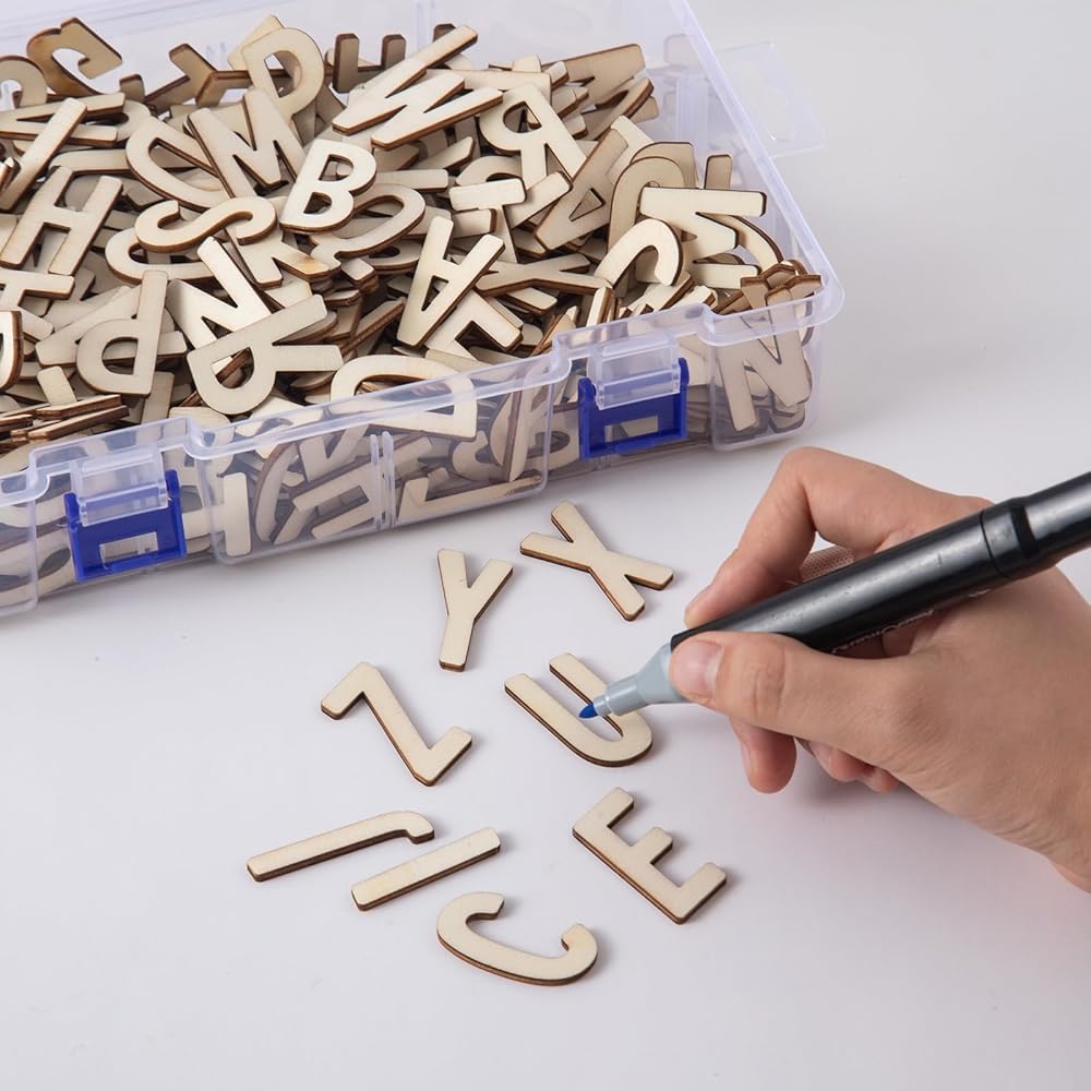 • 1.3 inch 500 pieces wooden unfinished letters unpainted wood finish alphabet letters for hobby DIY crafts