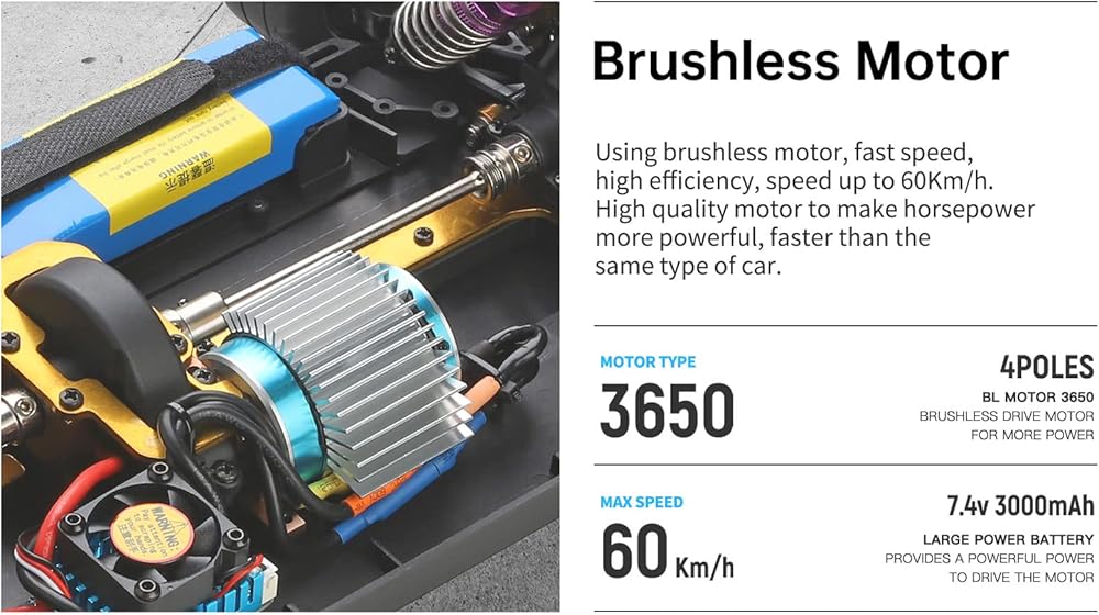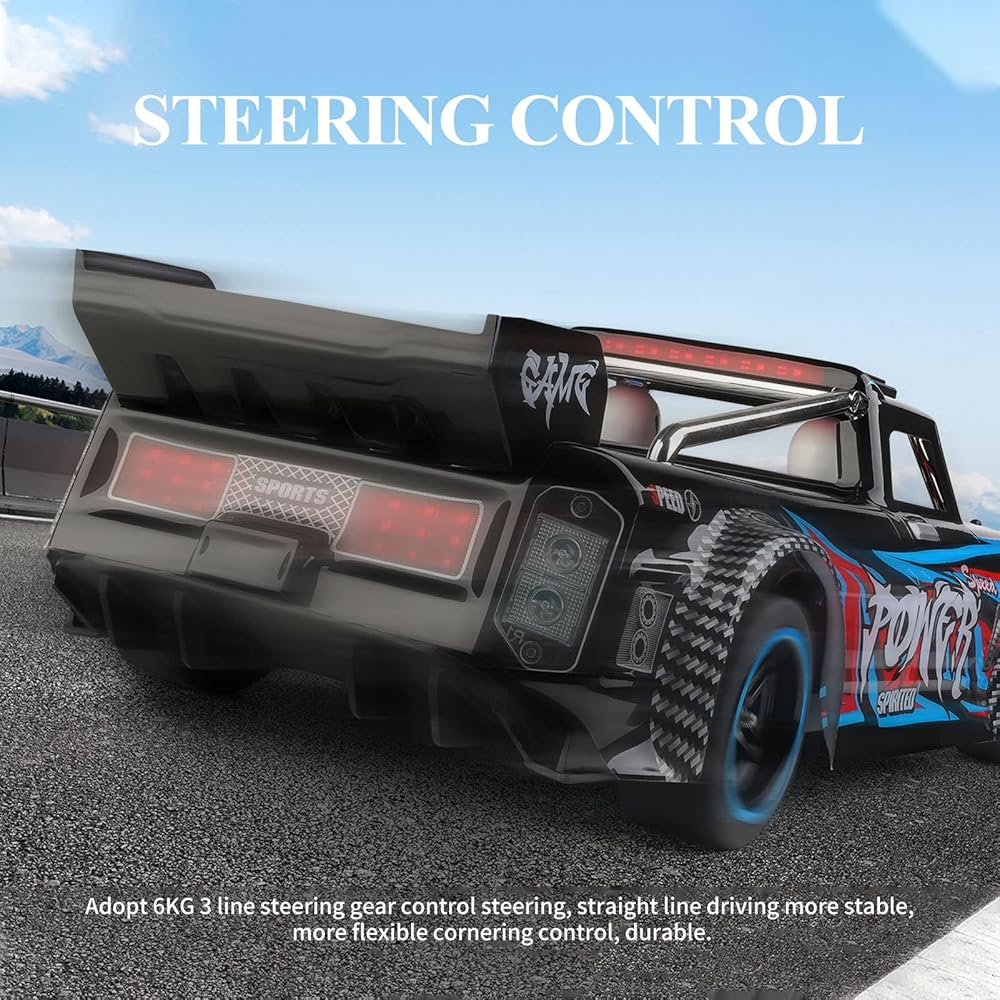 • باستخدام 7.4v 3000mAh بطارية الليثيوم-أيون عالية معدل ، ناتج طاقة المحرك بدون فرش ، يمكن أن تصل السرعة إلى 60 كم/ساعة. قذيفة سيارة LED الباردة ، والمصابيح الأمامية للتنفس القابلة للتحكم وإشارات المنعطفات المحاكاة ، وأضواء الفرامل ، وعملية خالية من الحاجز في الليل.