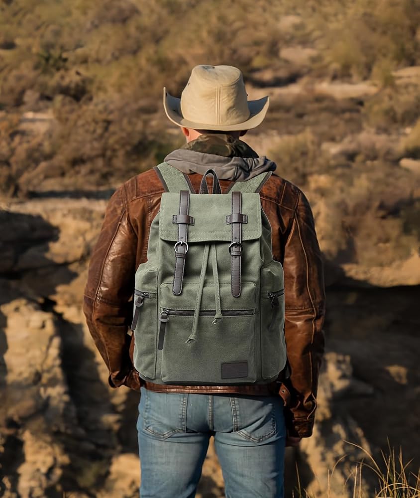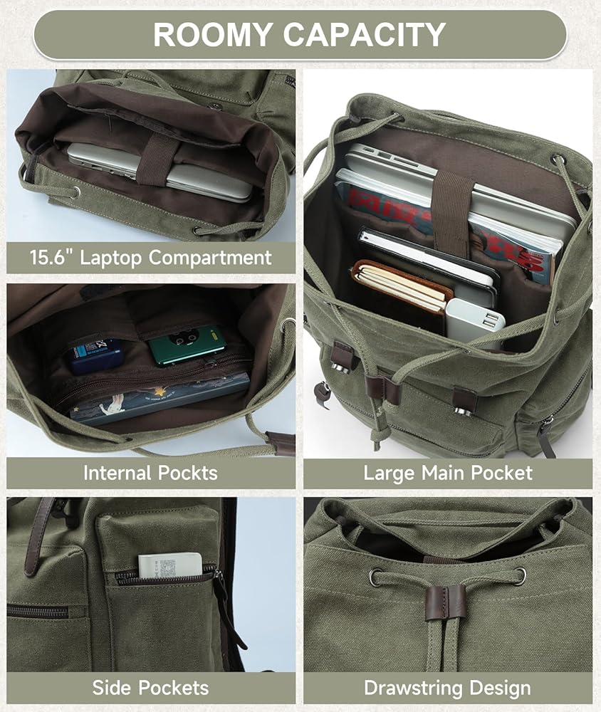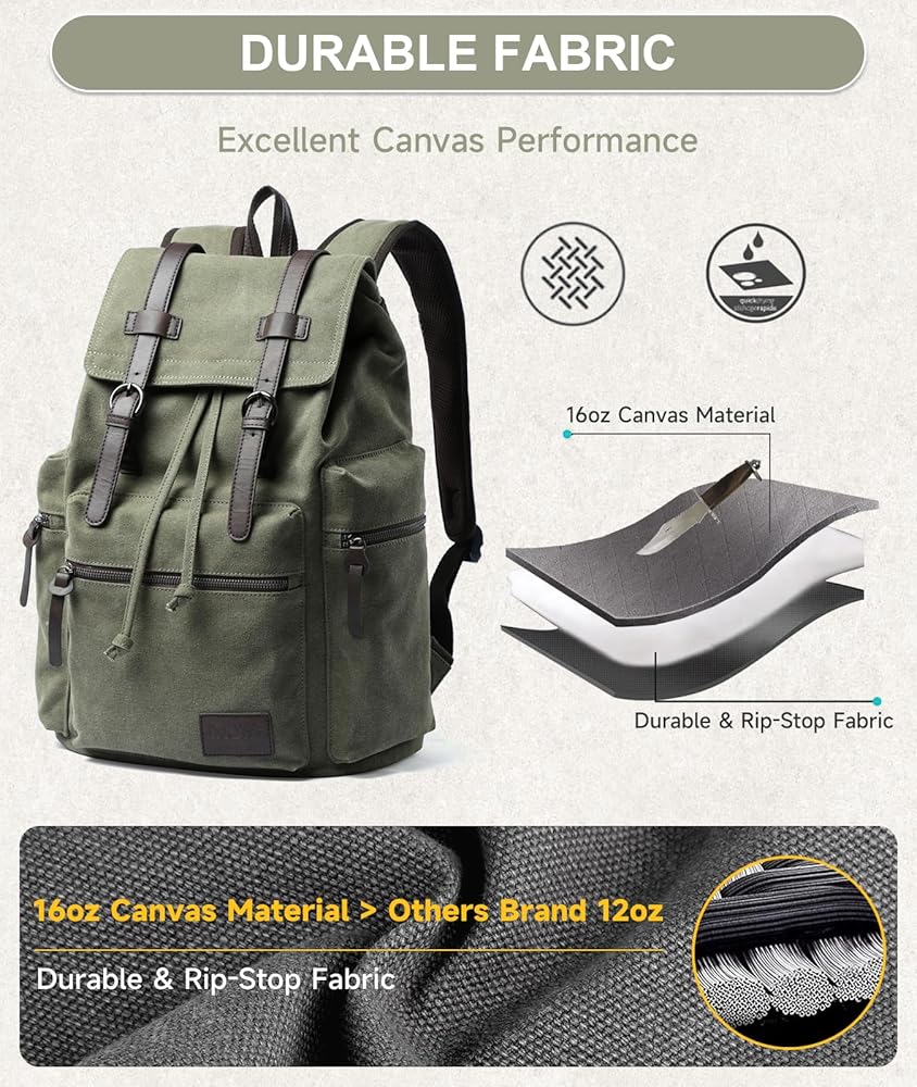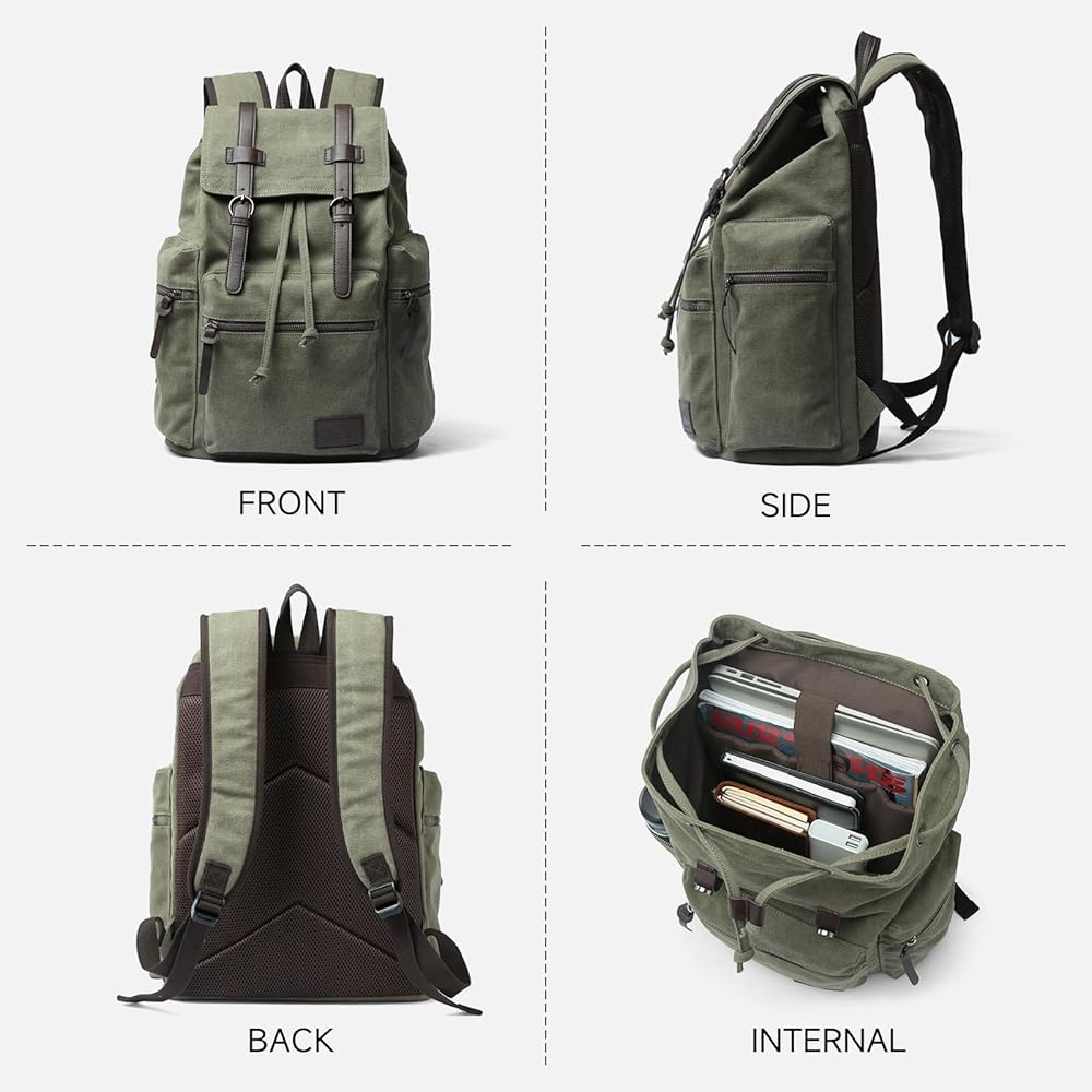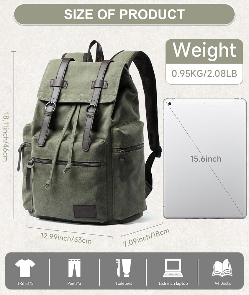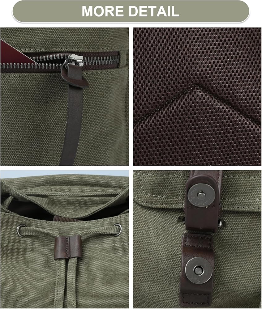 【جودة متينة وجودة】 تم تصميم حقيبة الظهر القماشية Moyyi Vintage من قماش وجلد طويل الكثافة وعالية الكثافة وطويلة الأمد. يعرض تصميم رفرف ورباط ، أزواج مع لهجات الأجهزة ، مما يخلق أسلوبًا رجعًا مسترخيًا وضمان الأمان.