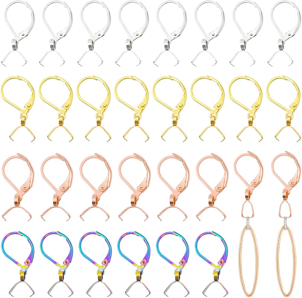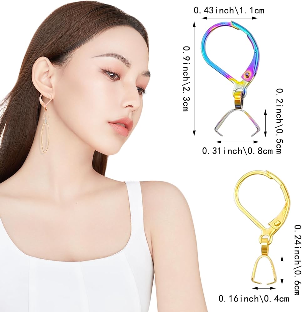40 PCS Leverback Earring Hooks, Stainless Steel Leverback Earring Findings with Pendant Bails, Leverback Ear Wires Hypoallergenic Pendant Clasp Supplies for DIY Jewelry Making