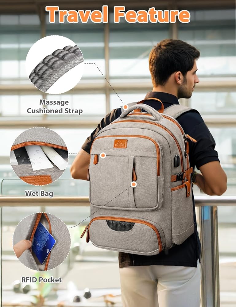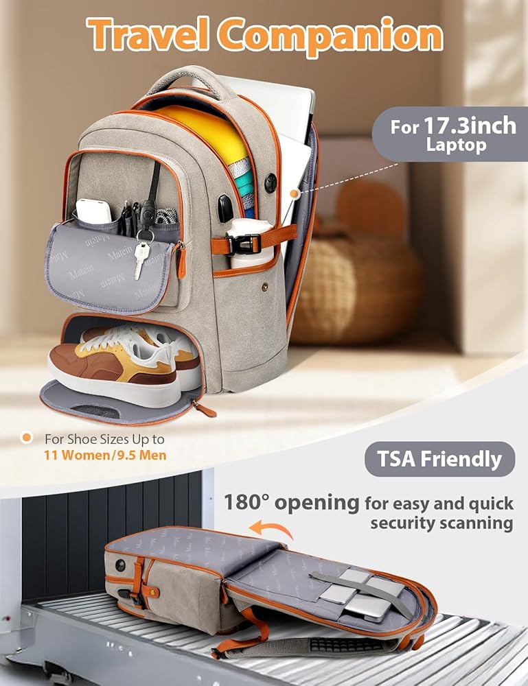 تخزين متعدد الاستخدامات: حقيبة الظهر السفر مع مقصورة الأحذية التي يتم التهوية (حتى أحجام الأحذية 11 امرأة/9.5 رجل) تحافظ على حذائك منفصلًا عن العناصر ، مما يضمن النظافة ومنع الروائح من البناء. مع جيب RFID ، يمكنك السفر بسهولة دون القلق بشأن السرقة الإلكترونية لبطاقة الائتمان والمعلومات الشخصية. يتيح لك الجيب الرطب تخزين العناصر الرطبة دون نقع الآخرين. حقائب الظهر السفر على رحلة معتمدة تجعل حياتك أسهل ، سواء كنت مسافرًا أو مسافرًا