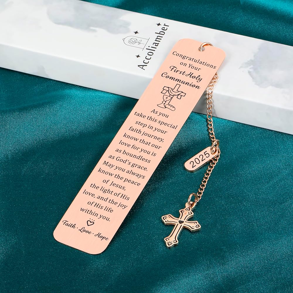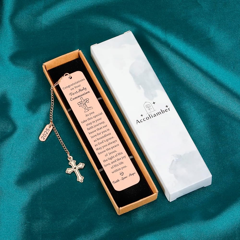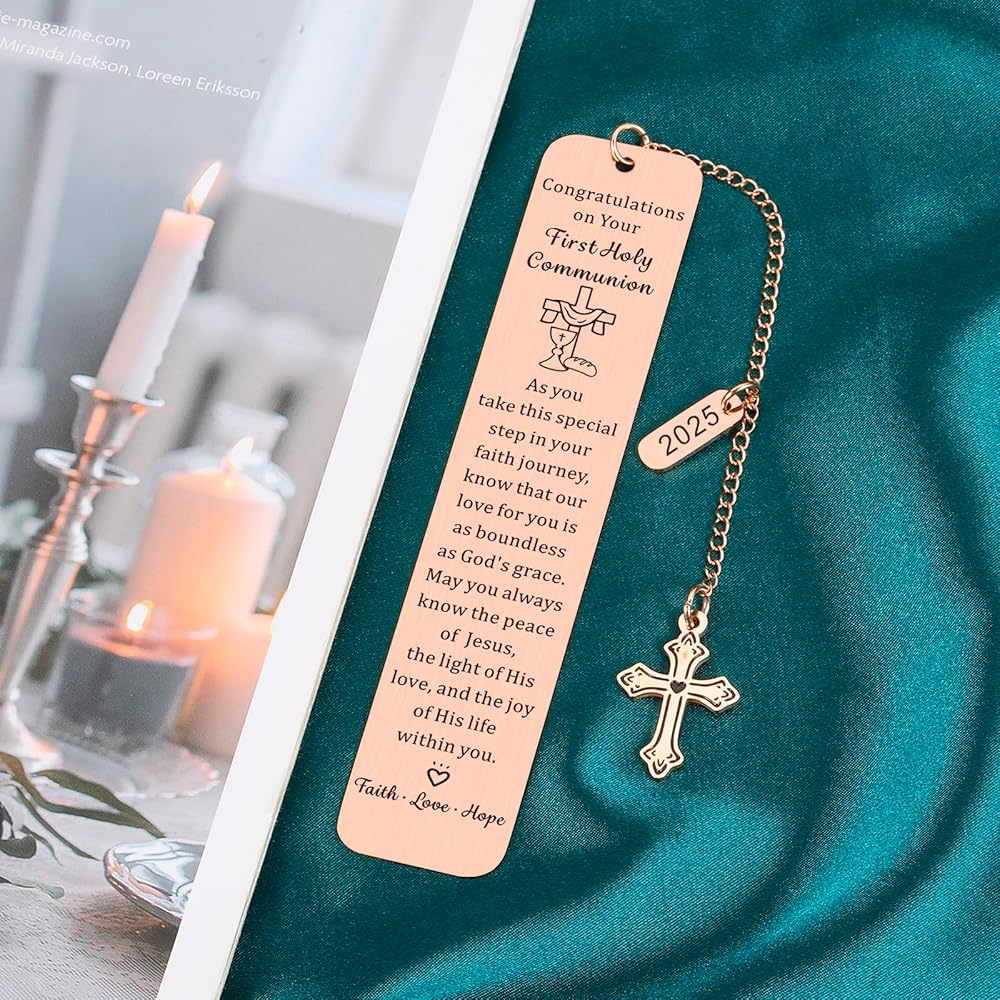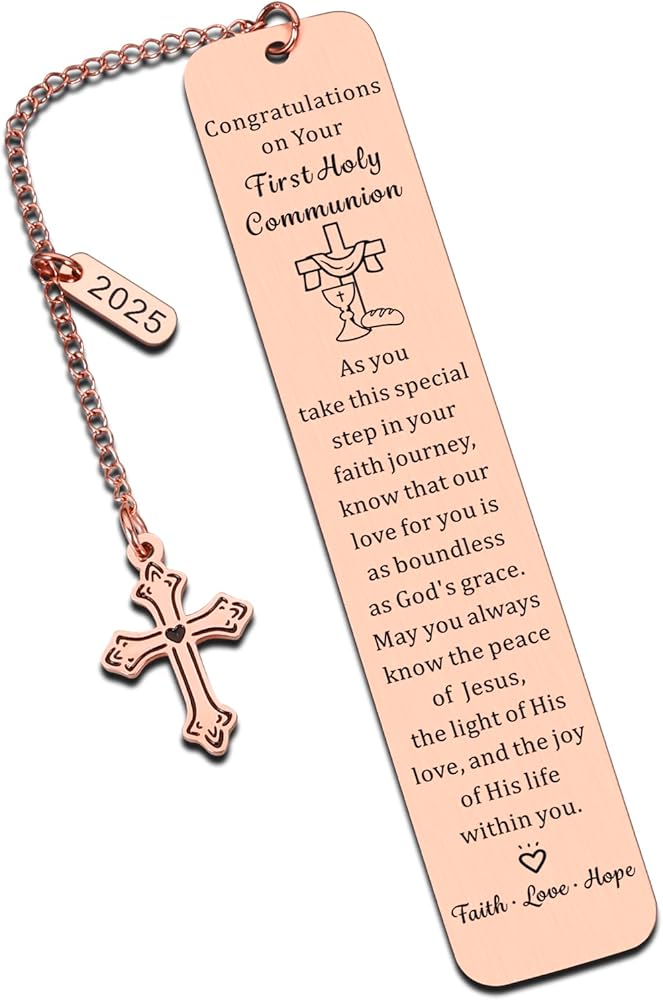 First Communion Gifts for Girls/Boys: This pretty bookmark is engraved with inspirational words “As you take this special step in your faith journey, know that our love for you is as boundless as god's grace. May you always know the peace of Jesus, the light of His love, and the joy of his life within you.” Perfect as first communion gifts for girls, first communion gifts for boys, 1st communion gifts for girls, 1st communion gifts for boys, first holy communion gifts for girls/boys