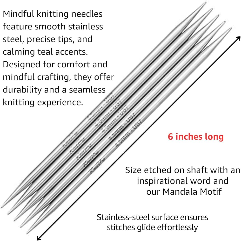 knitpro التعاطف المذهل مجموعة 6 بوصة DPN إبر مدببة مدببة الحجم 4 ، 5 ، 6 ، 7 ، 8 مع المقياس ، علامات غرزة والمزيد ، علبة النسيج مع حقيبة المشروع