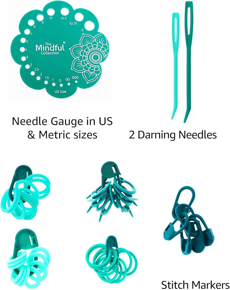 - يتضمن 1 knitpro mindful 6 بوصات 6 بوصات نقطة إبرة مجموعة مع حقيبة مشروع حرفية واحدة