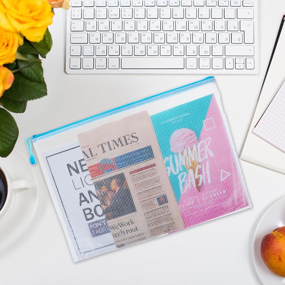Transparency Design: Featuring a translucent mesh design, these zipper pouches offer moderate transparency for easy file search while protecting the privacy of your important documents. The plastic zipper pouches inside can still be identified without fully exposing them.