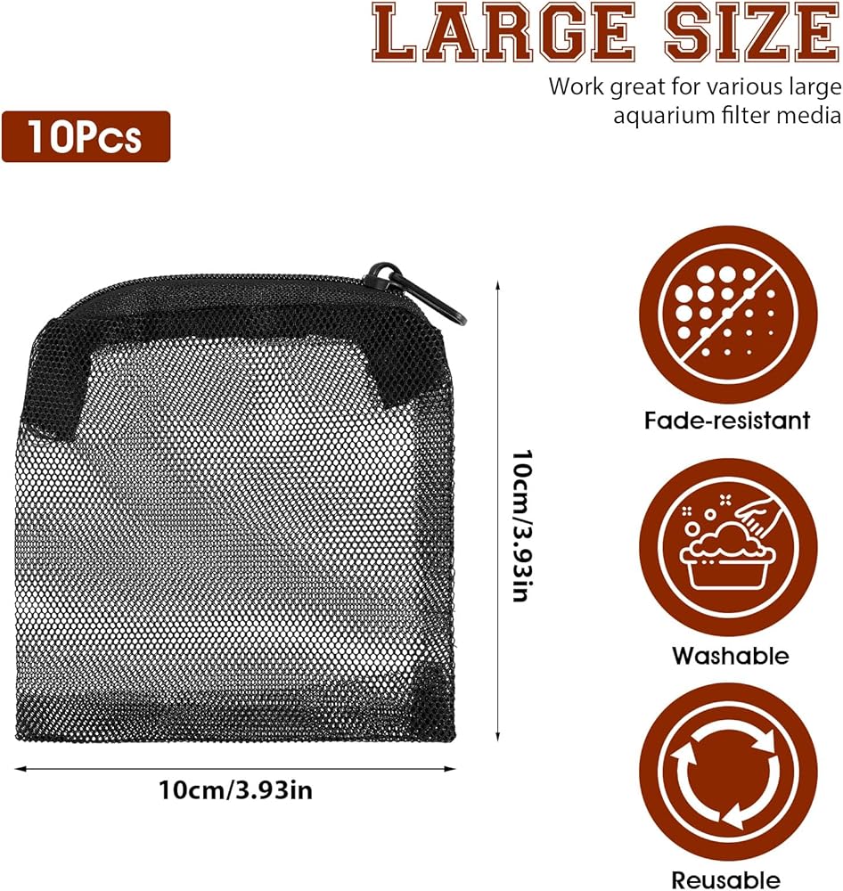 【What You Will Receive】10 media bags for aquarium, with sufficient capacity and wide opening design, which can accommodate various types of filter media. Filter bags for fish tank are suitable for freshwater and saltwater aquariums, helping to keep the aquarium water clean and transparent, meeting your daily use needs