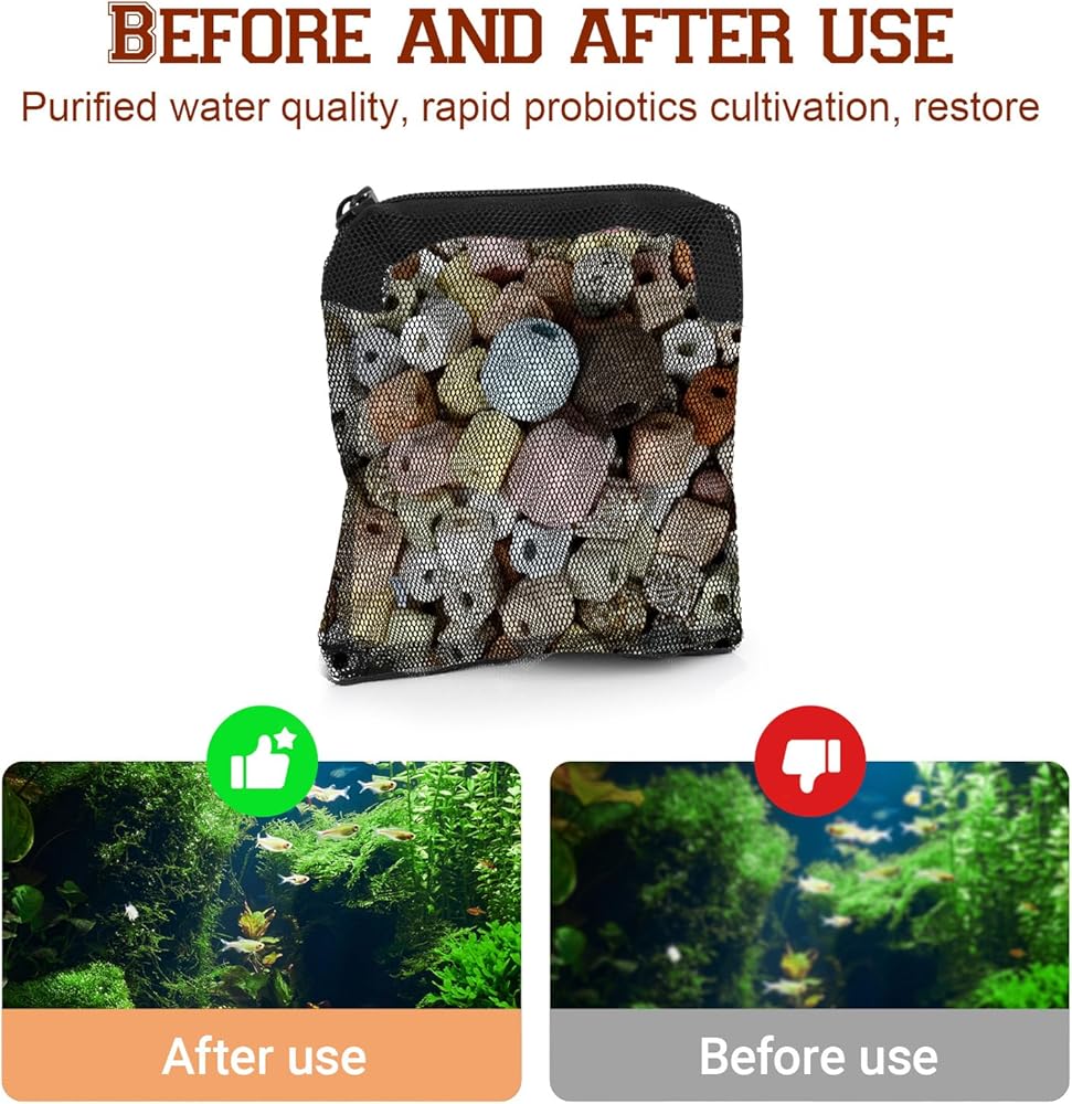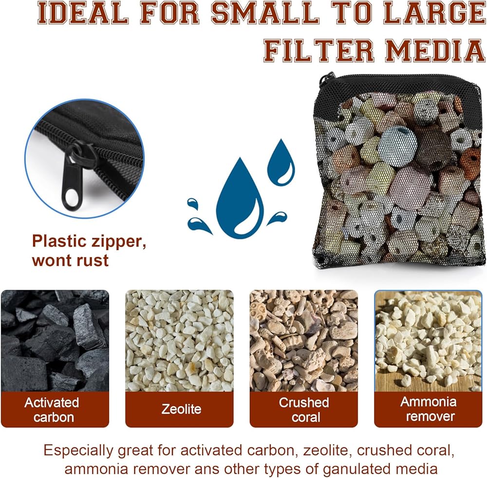 【Filtering Use】Aquarium filter bags are suitable for a variety of common aquarium filter media, such as activated carbon, ceramic rings, bio balls, zeolites, filter stones, etc. Aquarium media bags fine mesh can effectively help you organize and store these filter materials, ensure the clean water quality of the aquarium, and improve the filtration effect