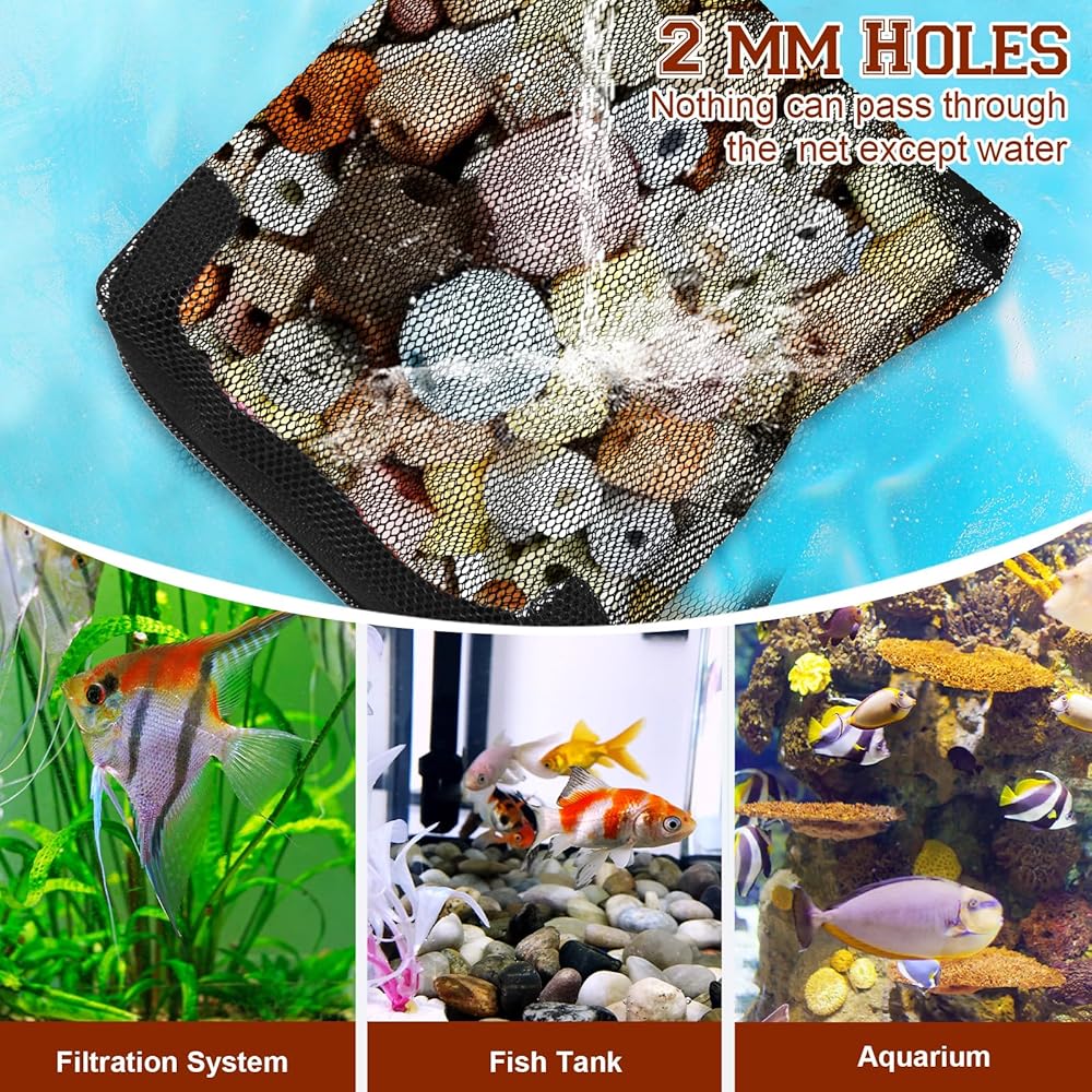 【Multi-purpose】Aquarium mesh bag is not limited to aquarium use. You can also use it as a storage bag to store small daily necessities, jewelry, fishing tackle and other items. Whether it is home organization or travel storage, these media bags can help you organize and store items efficiently