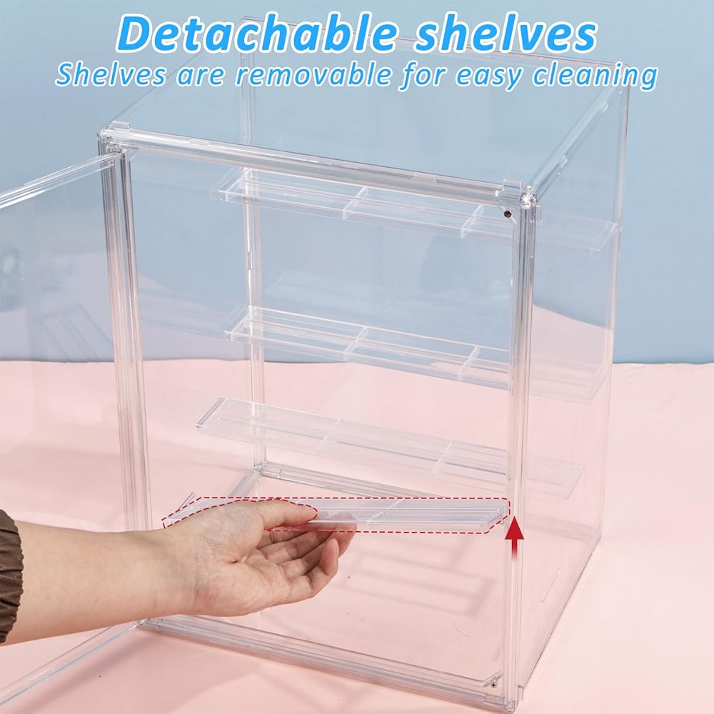 الباب المغناطيسي: الميزة البارزة في حالة العرض هذه هي الباب المغناطيسي ، الذي يفتح بسحب لطيف. يضمن الباب المغناطيسي سهولة الوصول إلى العناصر الخاصة بك ، مما يجعل من السهل إضافة أو إزالة المقتنيات بسرعة وسهولة.