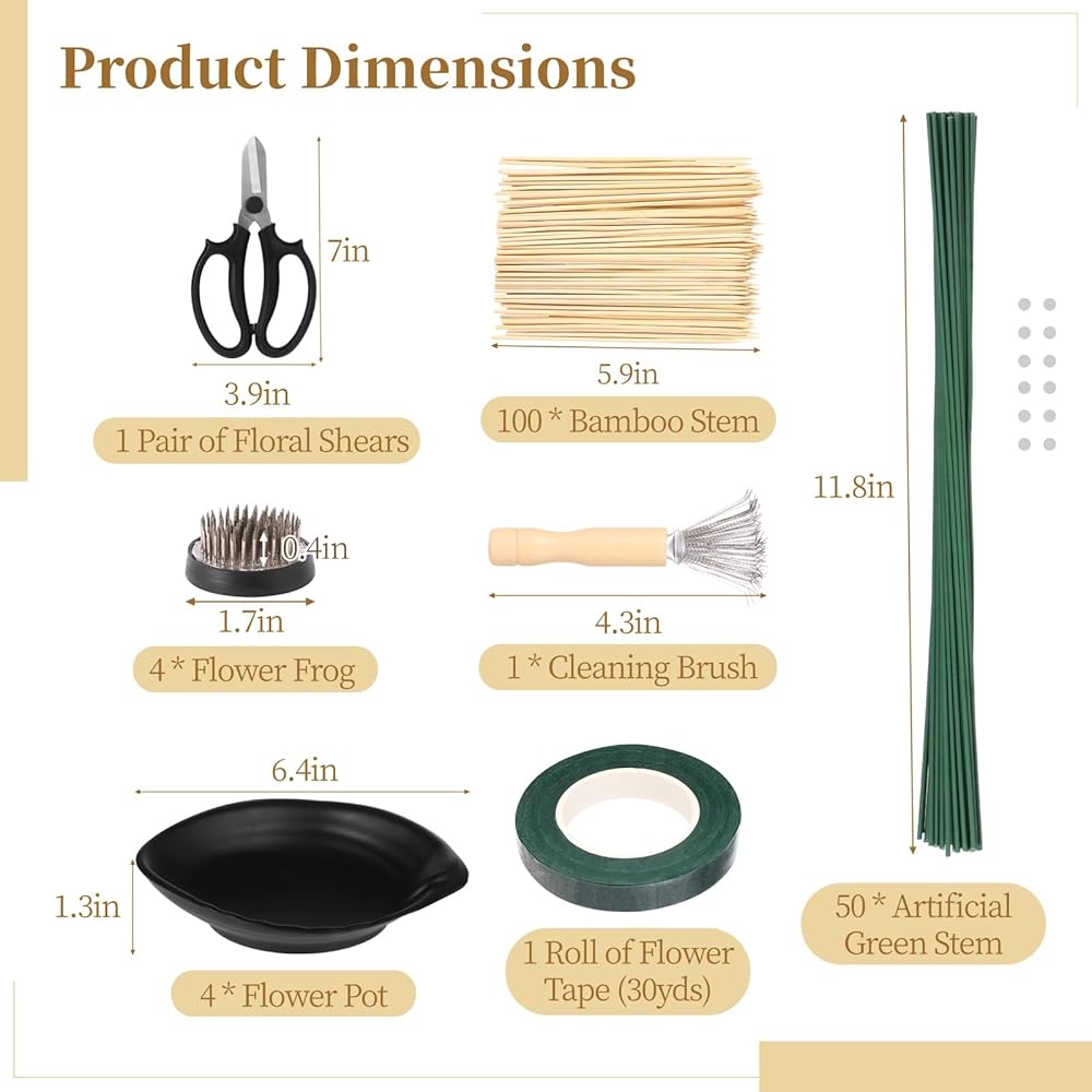 【مجموعة ترتيب الزهور الكاملة】 مجموعة ترتيب الزهور الخاصة بنا توفر كل ما تحتاجه لإنشاء تصميمات زهرية مذهلة ، بما في ذلك 4 ضفادع زهرة ، 4 أواني زهرة ، فرشاة تنظيف واحدة ، لفة واحدة من الشريط الأزهار ، وزوج واحد من مقصات الأزهار ، و 50 سيقان زهرة اصطناعية واقعية ، و 100 سيقان من الخيزران. ارفع دون عناء لعبة ترتيب الزهور الخاصة بك.