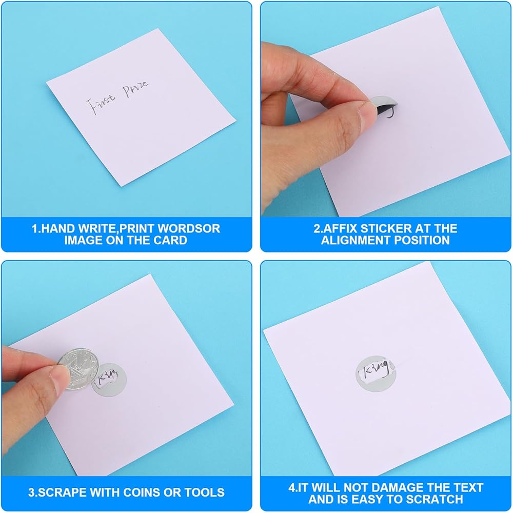 【High-quality Materials】Our scratch-off stickers are made of high-quality paper material, ensuring strong coverage and good light-proof performance. The card sticker adhesive is extremely sticky, with round stickers providing excellent confidentiality, avoiding accidental scratches, and keeping your content safe.