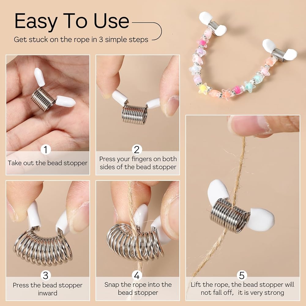 • Widely Used: The bead stopper can be used to fix the end of the bead wire during jewelry making to advoid the beads from falling off the wire. Whether you want to make exquisite bracelets, necklaces, earrings, or repair existing jewelry, these bead stoppers are excellent auxiliary tools