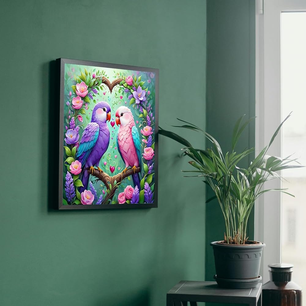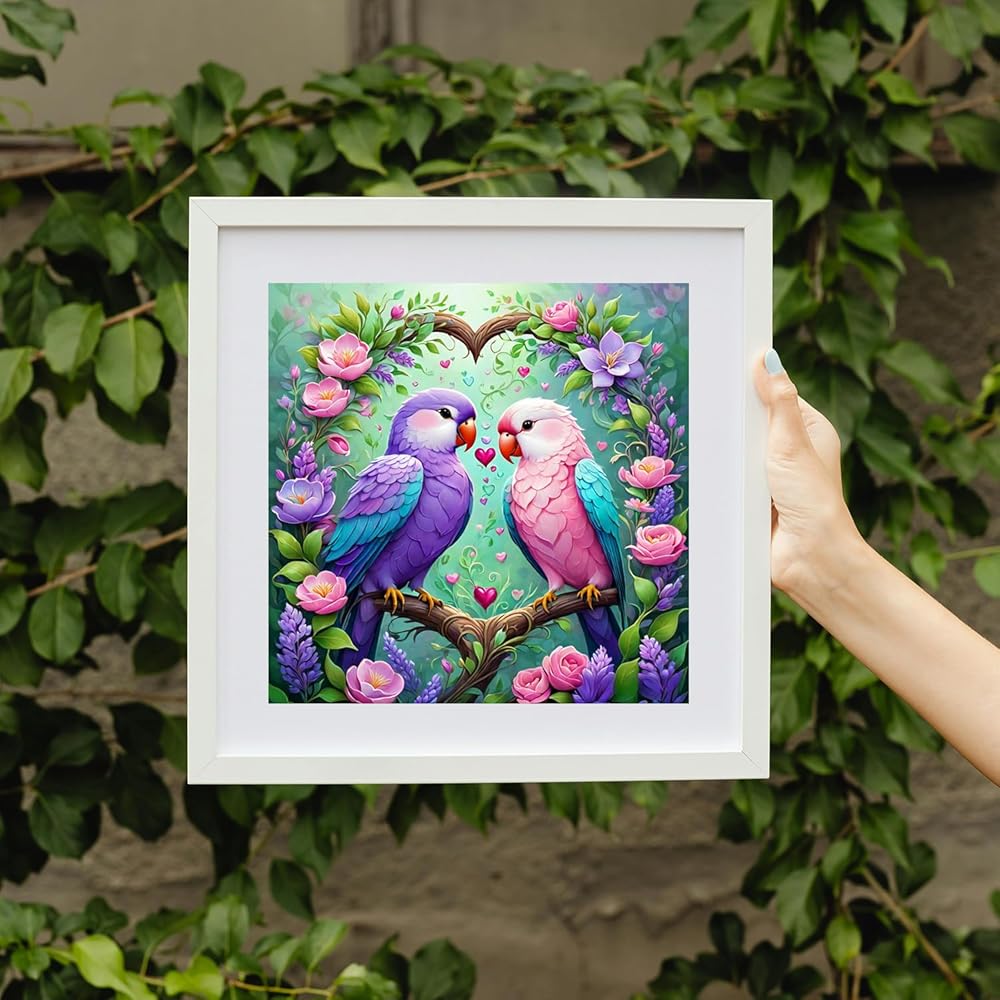 MBNTJHT DIY PARTOTS Diamond Painting مجموعات للمبتدئين للبالغين ، وزوجين من الطيور جولة الحفر الماس الماس للبالغين ، والفن الجوهري السهل الطيور والحرف للحصول على هدايا العطلات 14x14 بوصة.