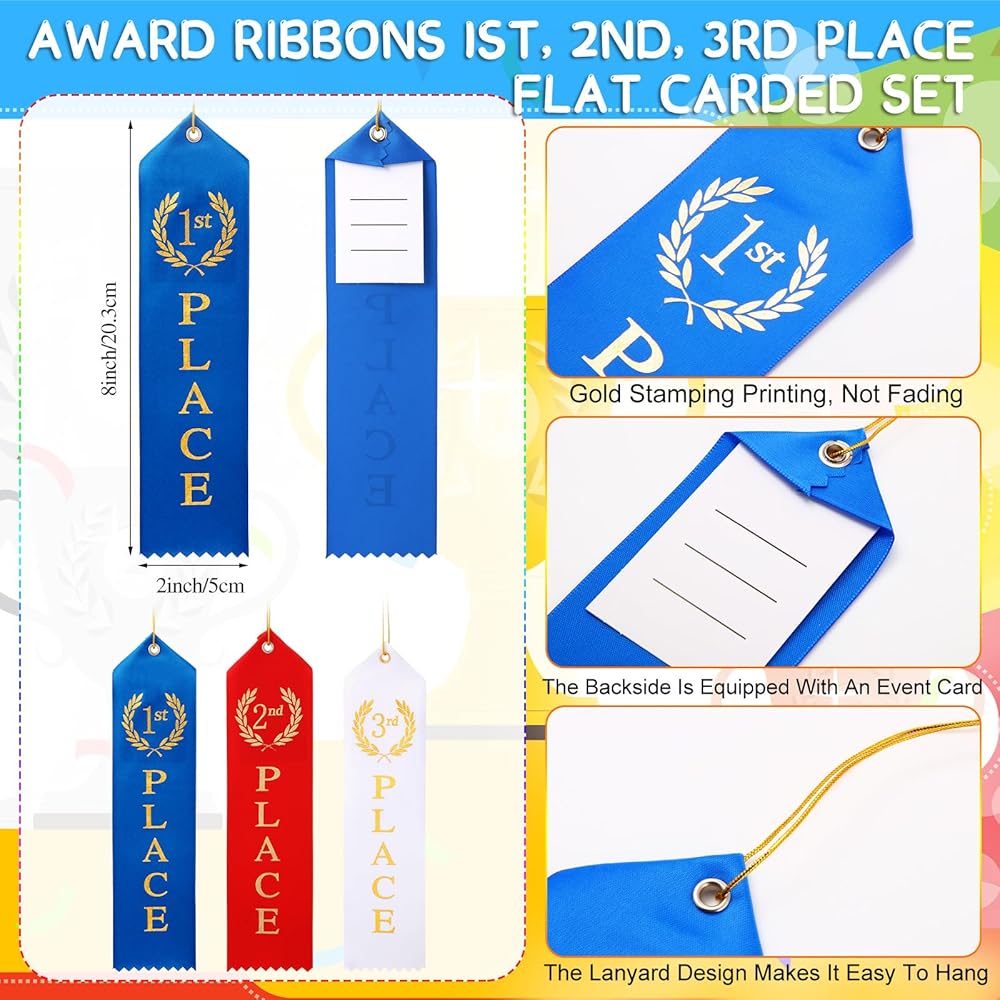 • Suitable Size: each place ribbon measures about 8 x 2 inches, there is a rope on the top of the ribbon, the right size, beautiful appearance, winners will feel happy and proud when they receive the ribbon; Each 1 2 3 medal is 2 inches in diameter, with a red, white and blue neck strap, and the length is about 15.75 inches; The right size to fit on your chest, our versatile medals for kids and adults can be awarded at food competitions, classroom parties, holiday parties, or office celebrations