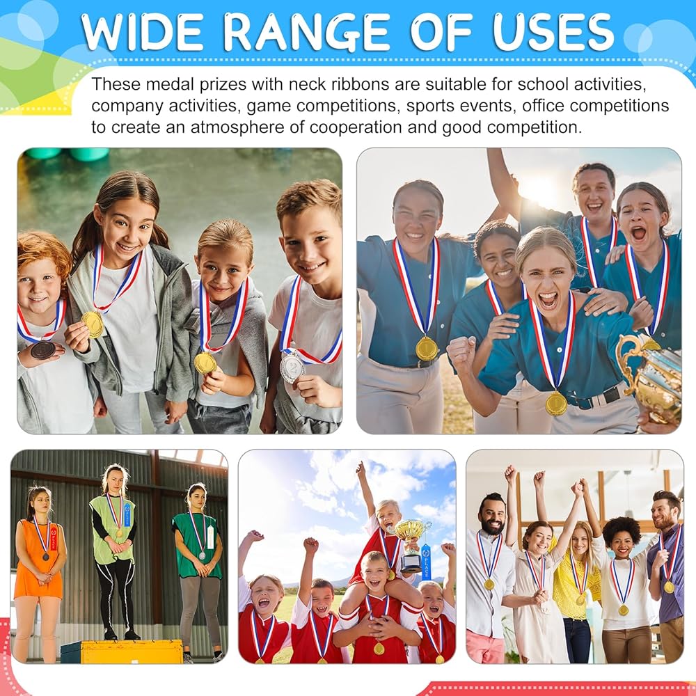 • Wide Range of Uses: these children's medals and ribbon kits can not only be applied as rewards for students' academic progress, sports and polite behavior, but these medal prizes with neck ribbons are suitable for party celebrations, school activities, company activities, game competitions, sports events, office competitions, etc. to create an atmosphere of cooperation and good competition